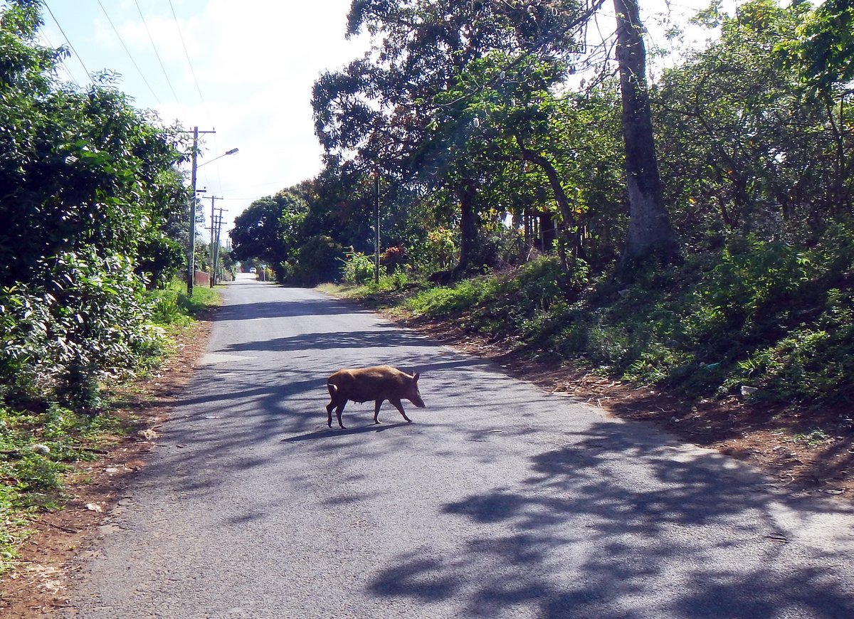 We found a single track dirt road at the end of the dock, which took us through some lush vegetation to the village. The main street is a dirt road running parallel to the shore line with the wooden houses spread out along its length. There was a mixture of shacks and reasonable houses, with the ubiquitous pigs wandering around everywhere.