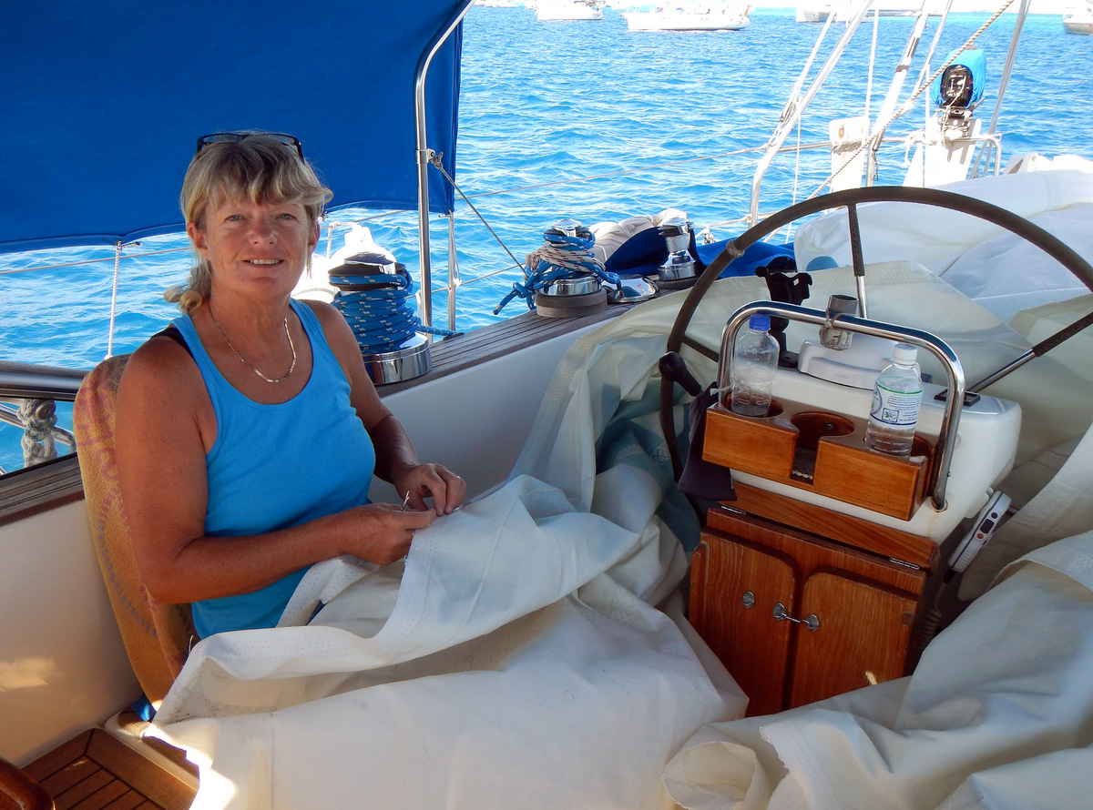 First thing in the morning, we took the sail over to “Samba” and agreed that Michele will replace the leech tape, put a 6 inch wide reinforcing patch all the way along the leech and do a few other small repairs. It’s going to cost us $900US to do the job, but it’ll be a relief to have it repaired properly and especially to have a leech line again, which will stop the irritating fluttering of the trailing edge of the sail.