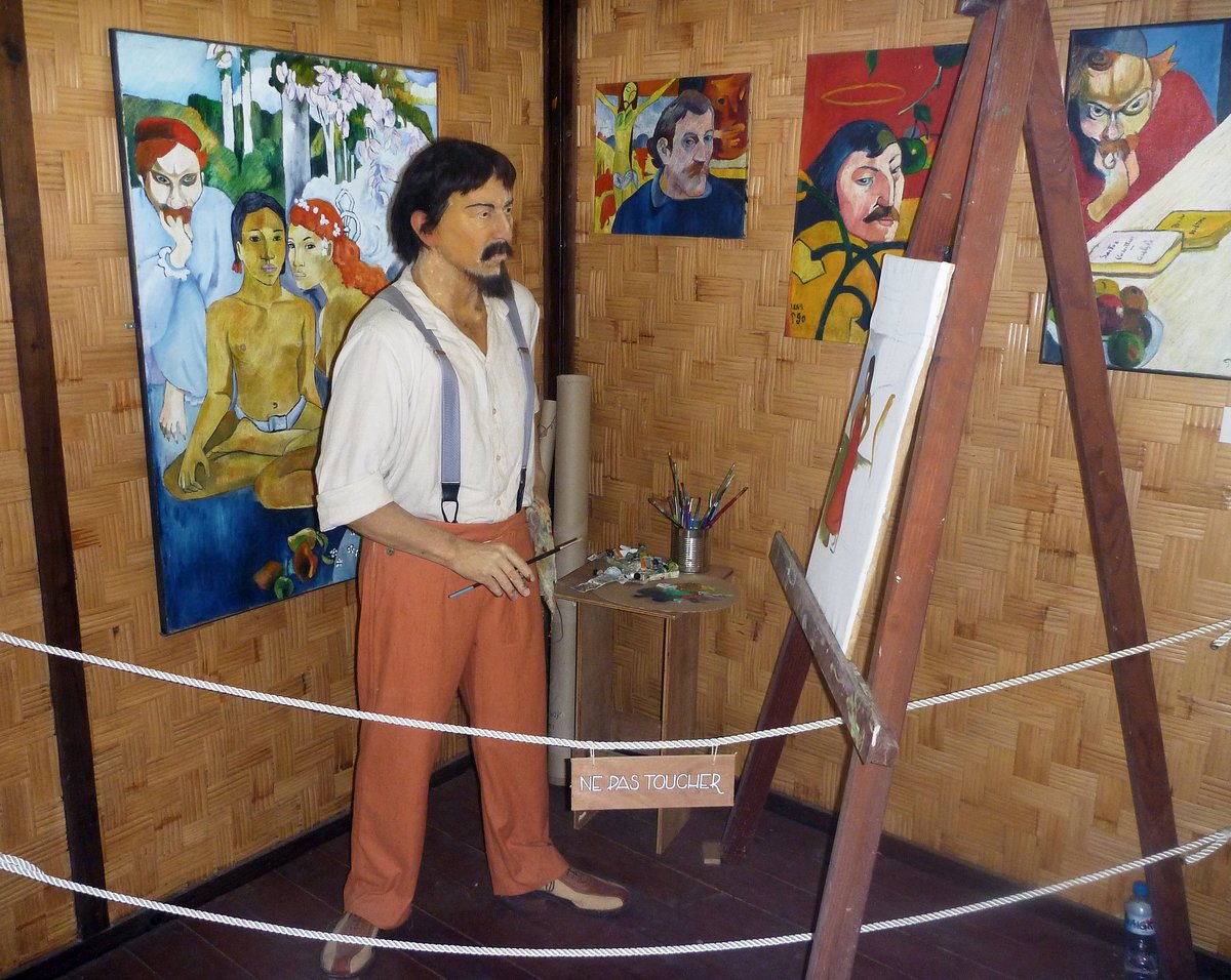 Paul Gauguin was a French artist who moved to Tahiti in the late 1800s and ended up in Hiva Oa. I'm not too enamoured by his painting, but visiting the museum was one of the few things to do in town. There’s an interesting replica of the house in which he used to live, with a good wax figure of Gauguin painting a picture. A Belgium musician called Jacques Brel also lived here, but having never heard of him, we didn't cough up the $3 fee to visit his museum.