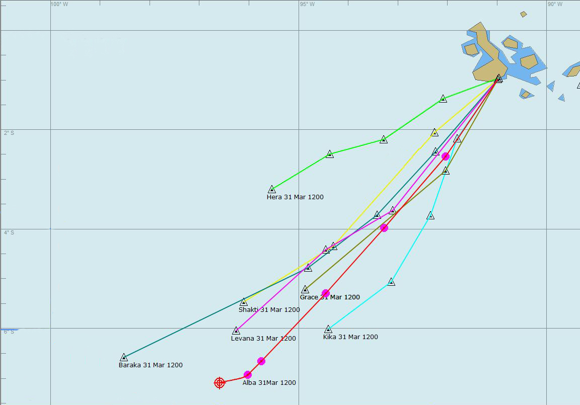 We had a quiet night in. I've tentatively worked out a route for our passage. We’re going to hedge our bets and aim for 6°S 94°W, which is a course of 210°, but this will obviously be subject to the wind direction – we’ll make sure that we use any wind to the greatest advantage.