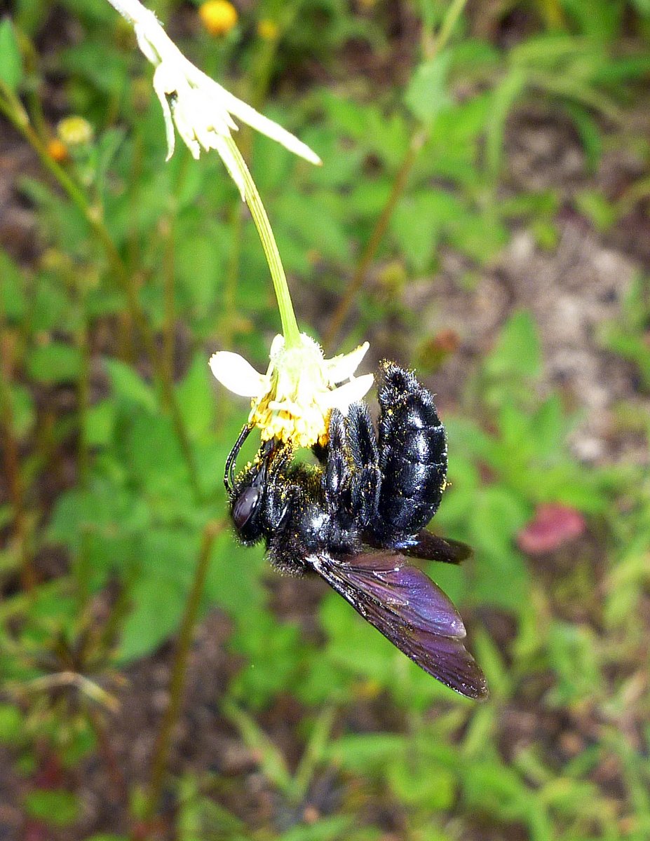 I finally managed to get a reasonable photograph of a Galapagos Carpenter Bee. We've often seen these jet-black bees buzzing around and know that they are the only native bee on the Galapagos Islands. What makes them very interesting is that they prefer yellow flowers, so therefore, all the native flowers on the Galapagos Islands are yellow – if the Carpenter Bee doesn't like the colour of the flower then it simply doesn't get pollinated.