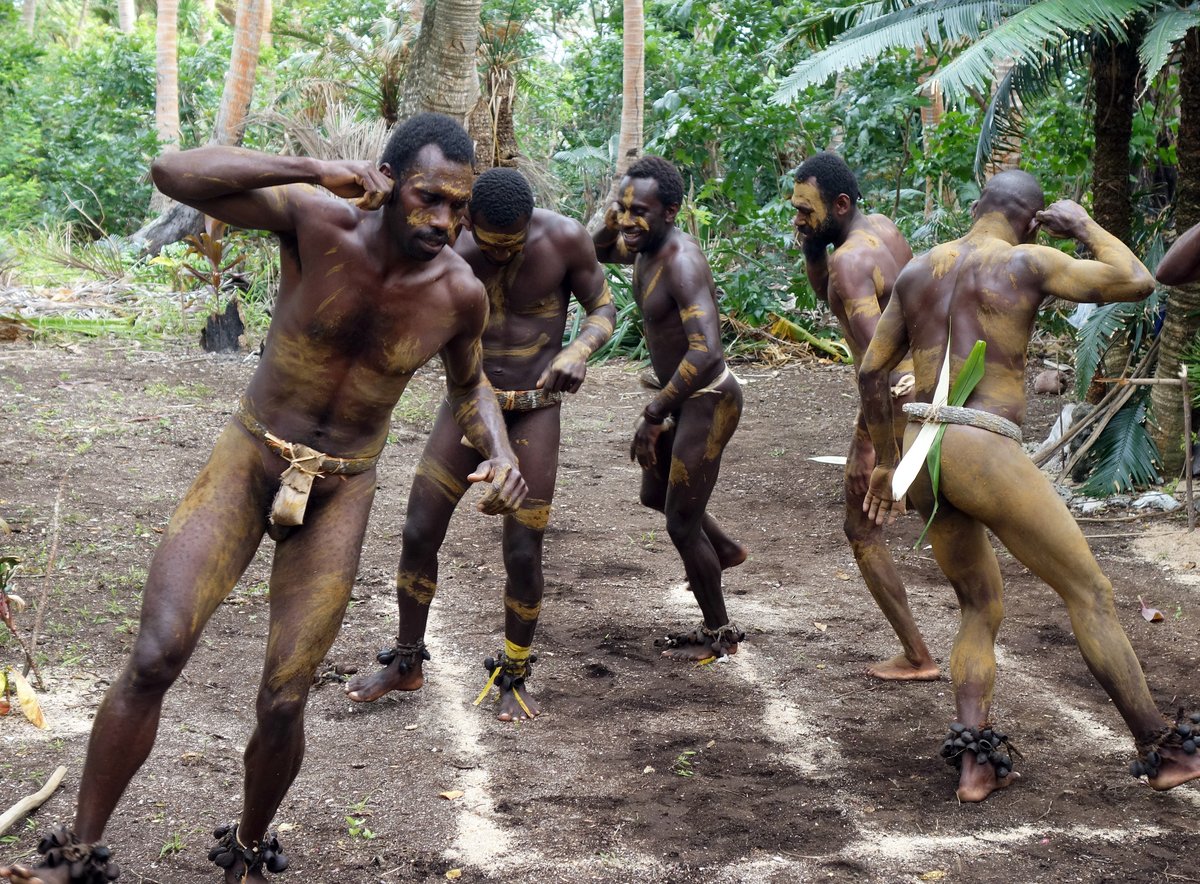 After lunch, we went ashore to watch some Kastom dancing that “Caduceus” had arranged with the village’s yacht liaison, Stewart. The men were dressed in their traditional Nambas, which are penis pouches made from banana leaves. In this area, the men are known as Smol Nambas (which means small penis pouch). In the north of Malekula, live the Big Nambas who (errrr) have big penis pouches - I’m not sure if the men from the north are better endowed…