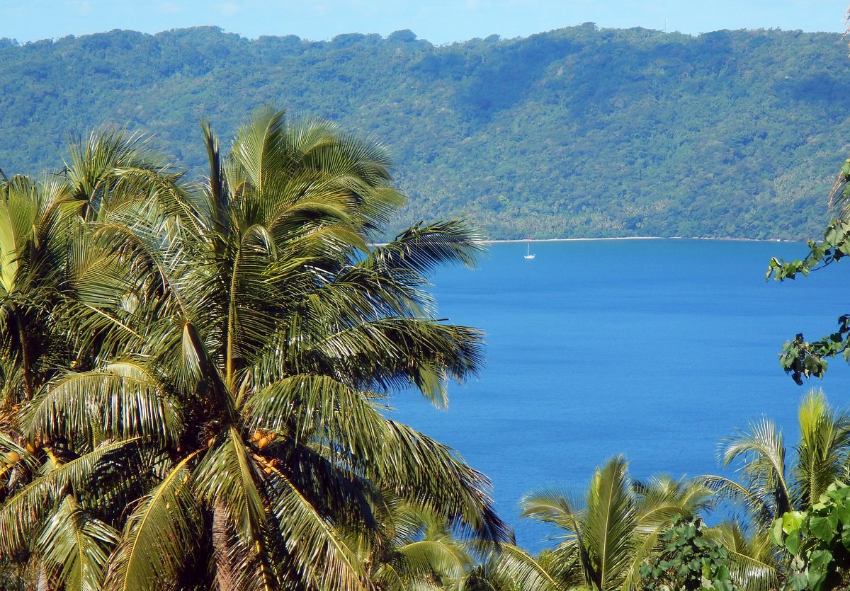 At half past eight, we picked up the anchor and motored around to Uliveo Island, a mere five miles away. We had to weave our way though some reefs and encountered big standing waves just off the island where the 20 knot wind was against a two knot current, but that was only short lived.