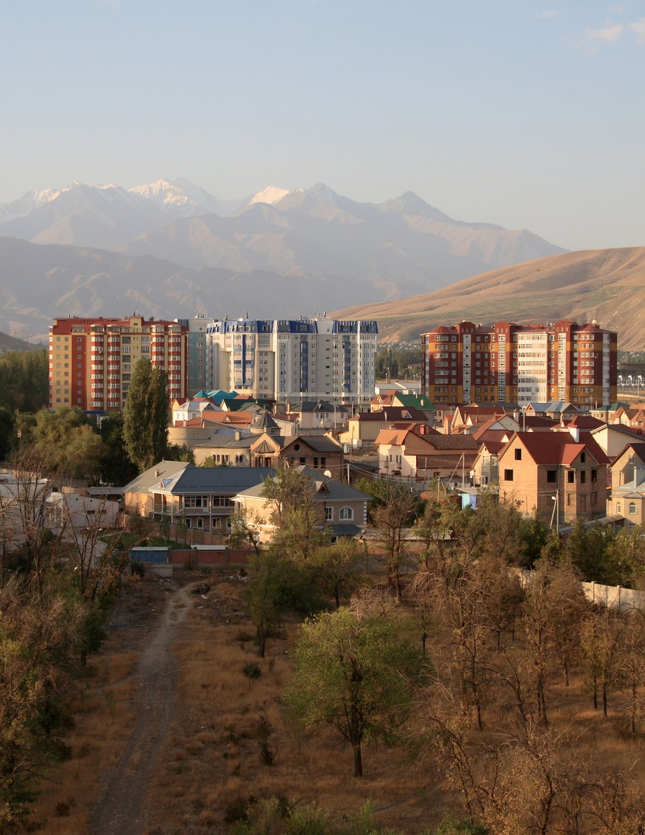 The trip out here went smoothly – 1½ hours delay at Heathrow, 7 hours of tedium on the flight, but we arrived safe and well in Almaty, Kazakhstan at dawn. A tourist guide called Natasha picked us up in a minibus and we had a four hour drive to Bishkek – the capital city of Kyrgyzstan.