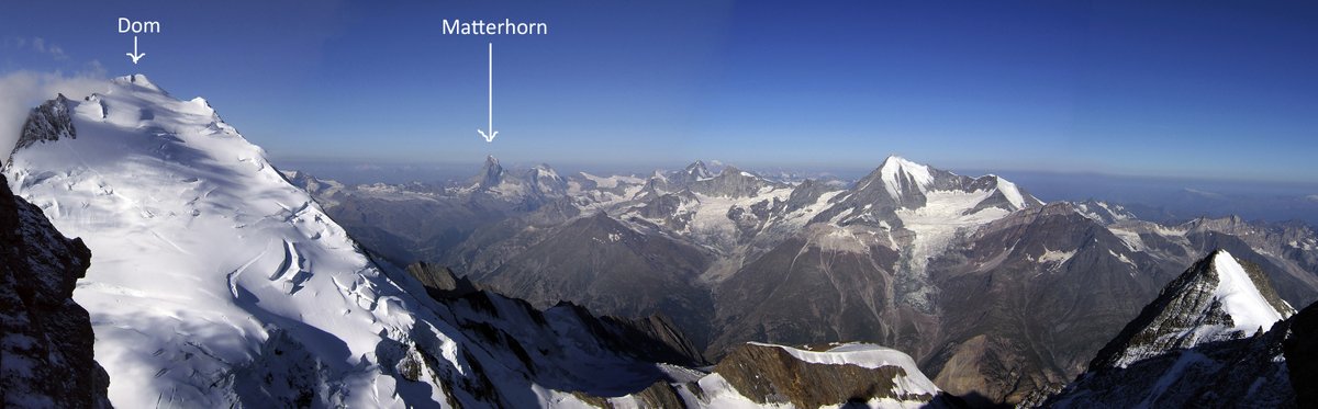 The view from the top is fabulous. We had a fantastic view of the Zermatt valley including the Matterhorn – it was very exciting to catch a glimpse of my next objective. The top of the Nadelhorn is tiny – literally about one square metre with a metal cross on top, so everyone was taking turns to have their photograph taken on the summit.