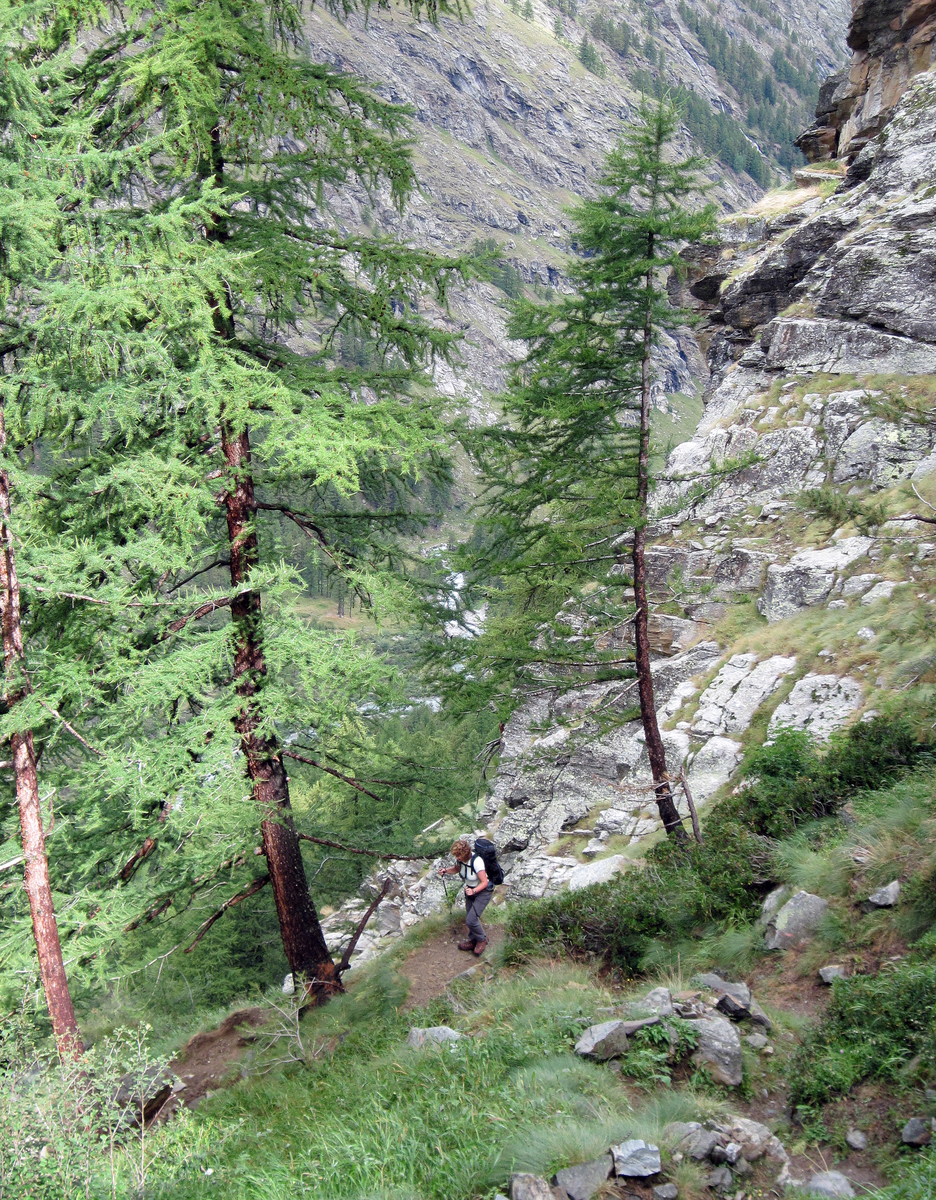 The next day had low cloud, but no rain, so we went for a bumble up to the Oeschinensee – a nice blue lake in the mountains. It was very misty, but we had a good walk. The plan the next day was to do another walk up to a small peak, but it started to rain after breakfast, so we had a rethink. We drove to the train station, onto the train and were transported south through the mountain. It was still raining in the Rhone valley, so we drove through the St Bernard tunnel into Italy and ended up in Valnontey near Cogne. It was still raining but the weather forecast looked much better.