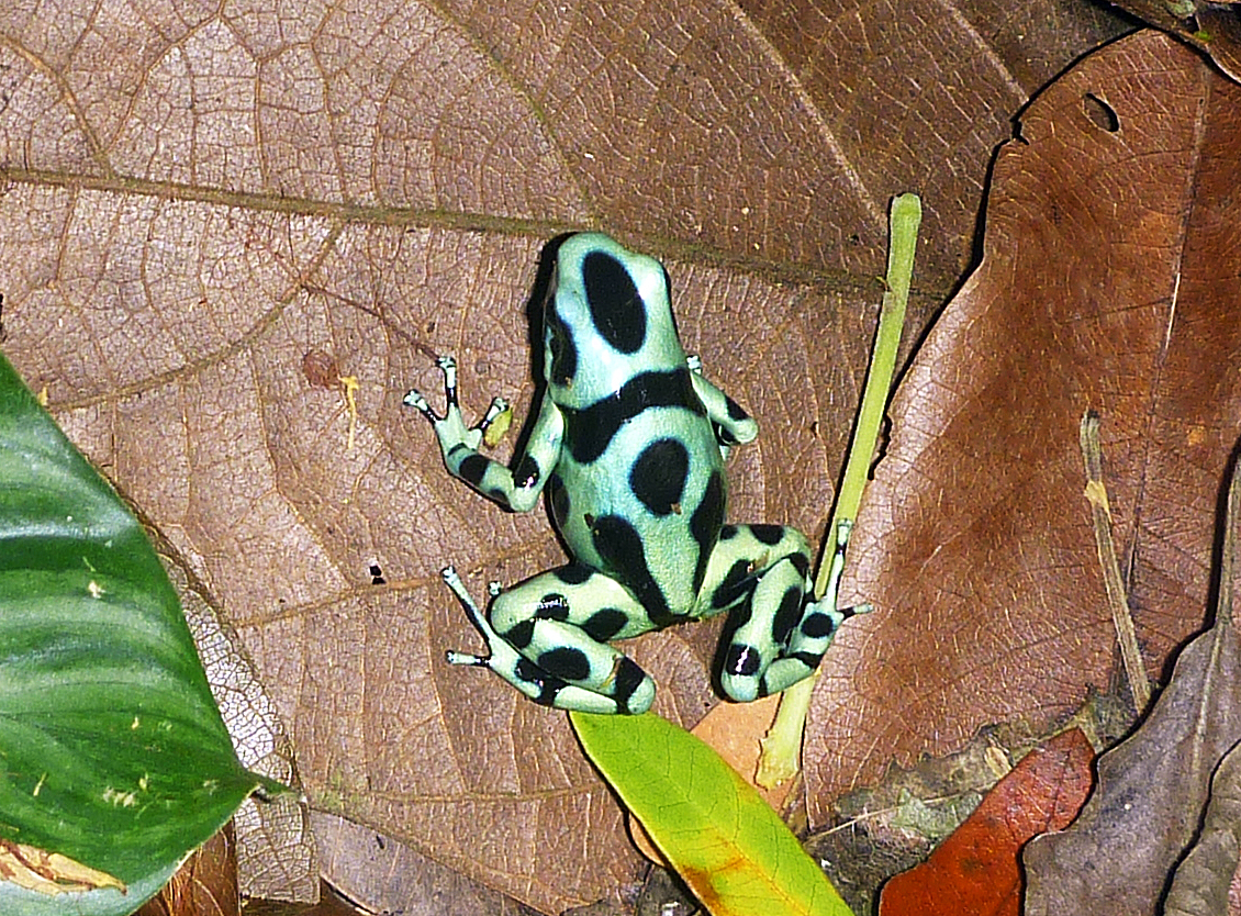 When we stopped for lunch, we saw a green and black Poison Dart Frog similar to the one that we saw on the mainland in Bocas del Torro. There’s a lot of wildlife around here. Back on the boat, as the sun went down, we watched eight Scarlet Macaws flying overhead to roost on a tree on the ridge above us along with a couple of hundred Vultures.