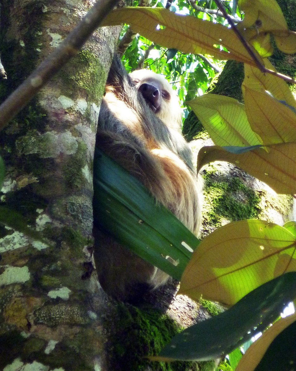 We saw lots of wildlife – a couple of Chestnut Mandibled Toucans, a troop of White Faced Capuchin Monkeys and a White-nosed Capamundi, which was wandering around at the edge of the road, very unconcerned about us being fifteen foot away. The best of all was spotting a Sloth sitting in the crook of a tree dozing with a small baby in it arms. We've been trying to find a sloth for five months, but they're incredibly well camouflaged, so it’s good to finally see one close up – we can leave Central America now.