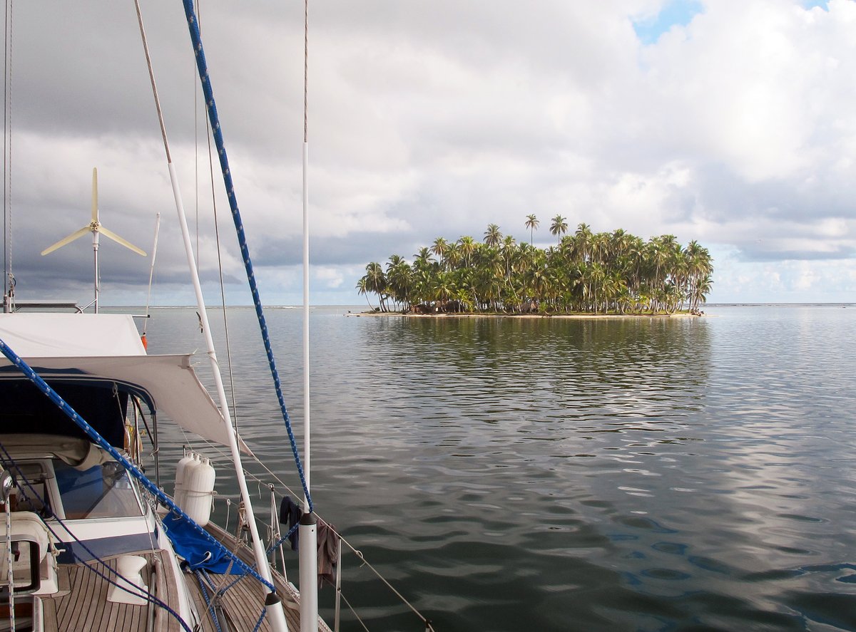 We approached the Lemon Cays and went towards Chichime which is a very popular anchorage. As we approached, we counted ten boats at anchor, which looked too crowded. Instead, we weaved our way through the reefs and sand banks to anchor off Yansaladup which is a small isolated island with only two other yachts at anchor, the closest being 200 metres away. At 12 metres, it’s a deep anchorage, typical of this area, but the seabed is sand and good holding. The island of Yansaladup is a small circular island covered in coconut palms and looks to have one family living in traditional grass huts – looks pretty.