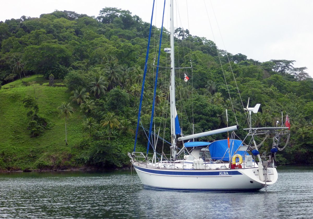 We then took the boat out of the marina to do a short sea trial. I wanted to make sure that the engine ran well after the timing belt had been changed and also that the rudder worked correctly. We must have looked an odd sight as we pirouetted around the large ship anchorage just inside the Colon breakwater. I ran the engine at various speeds including full revs (which sounds scary) and did various manoeuvres using the steering wheel and the autopilot, we even spent a few minutes going backwards at 3 knots to put different loads on the rudder. All seemed to be working correctly, so we went into the marina and tied up in our allocated berth.