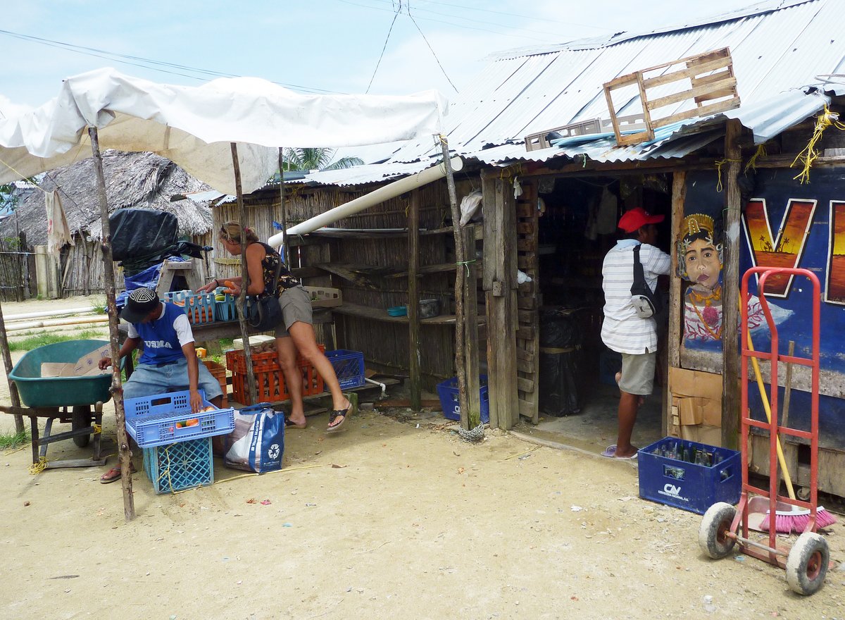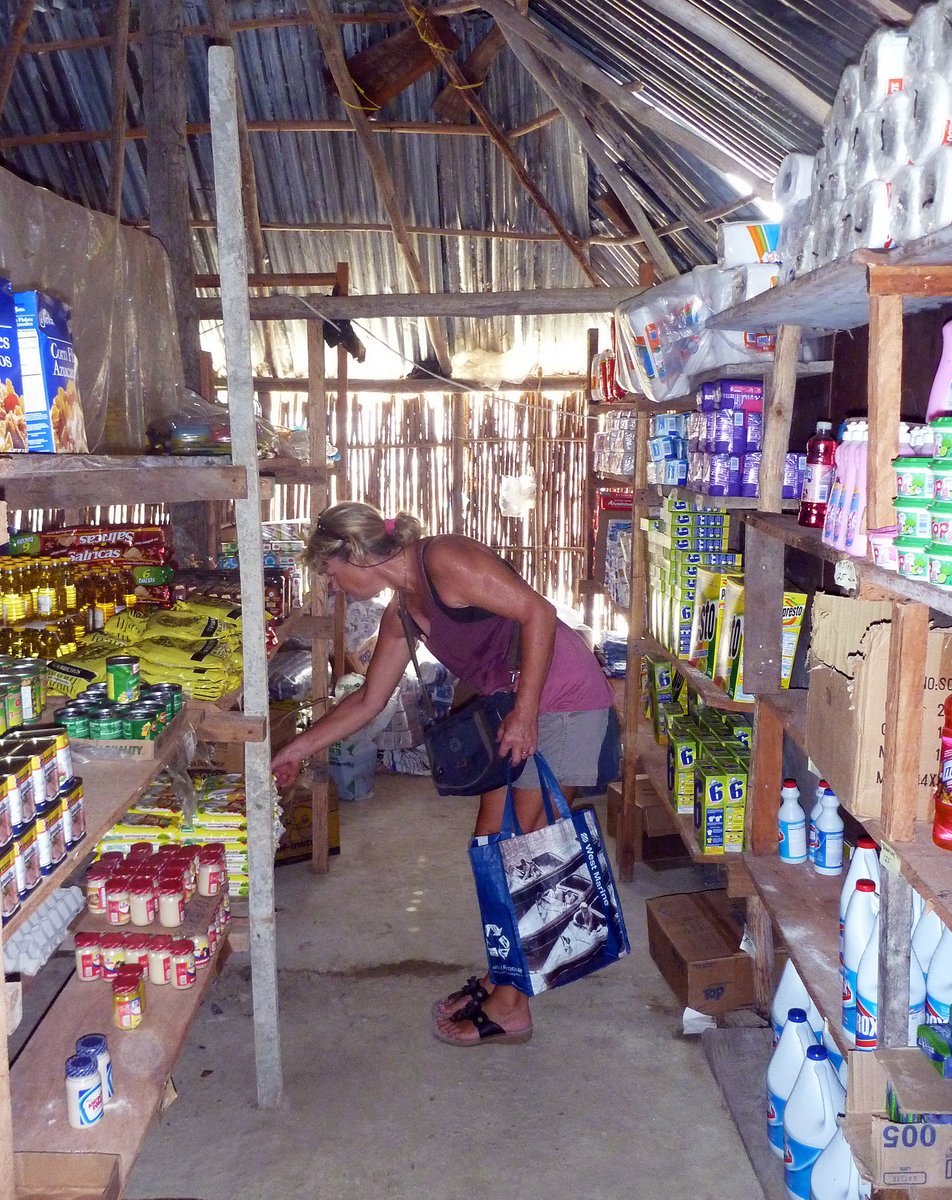 It only took a couple of minutes for a “guide” to latch onto us and for once I was grateful to have someone to help us with our shopping. The town is a mixture of traditional thatched houses and single storey concrete buildings dotted along hard-packed dirt streets. All of the shops are very small and it’s difficult to differentiate between homes and shops. Fortunately, Onel was able to take us directly to places to buy various things.