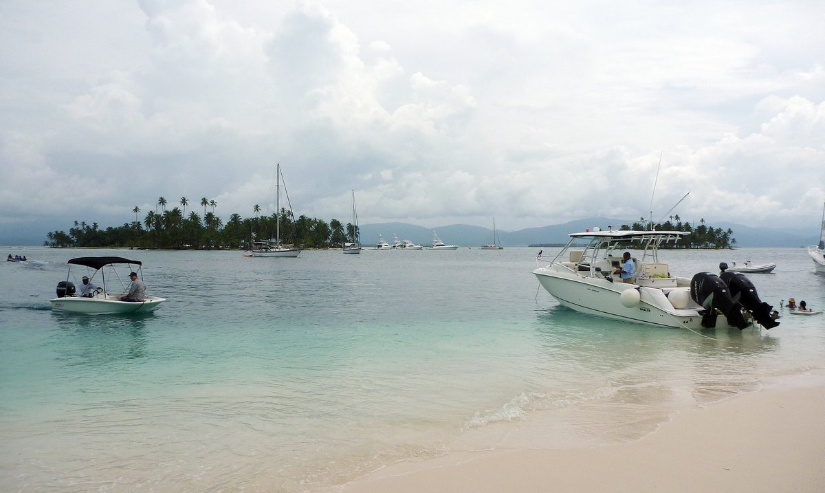 It’s Saturday, so the rich Panamanians came out to play. The normally tranquil anchorage turned into Blackpool as over a dozen big power boats arrived, anchored on the beach and disgorged hordes of people with their floating ice boxes and drinks holders. Loud music poured from speakers as the mostly white Panamanians started to party.
