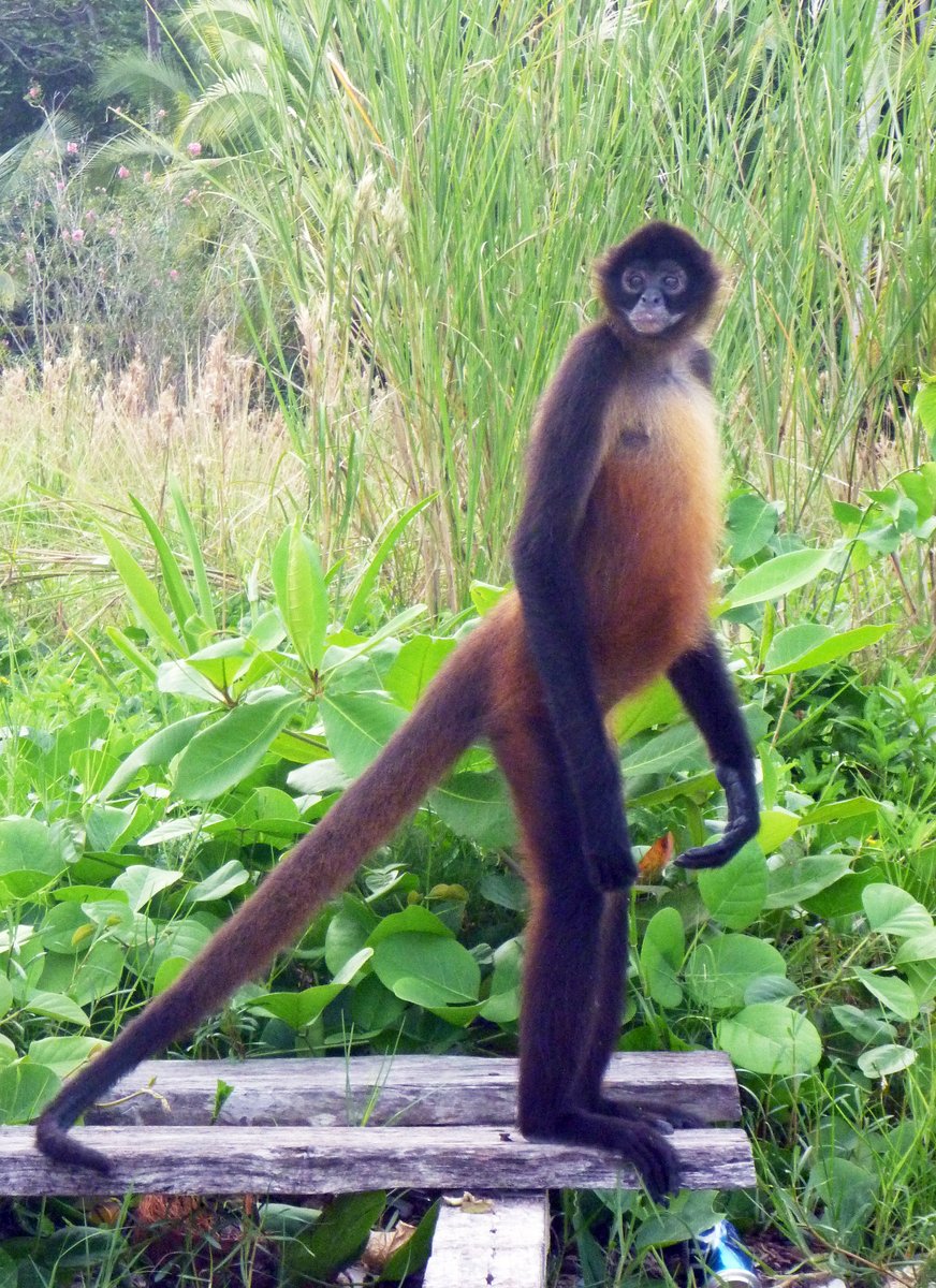 In the evening, we dinghied over to the dock on Isla Linton to watch the small troop of Spider Monkeys that come down to the shore every evening. There was a boat of locals that had arrived before us who were feeding the monkeys – obviously a local attraction. The monkeys have amazing prehensile tails and extremely long thin limbs. When they stretch out, they stand about four feet high, yet can curl up into a small ball – cute, but unpredictable, so we kept our distance.