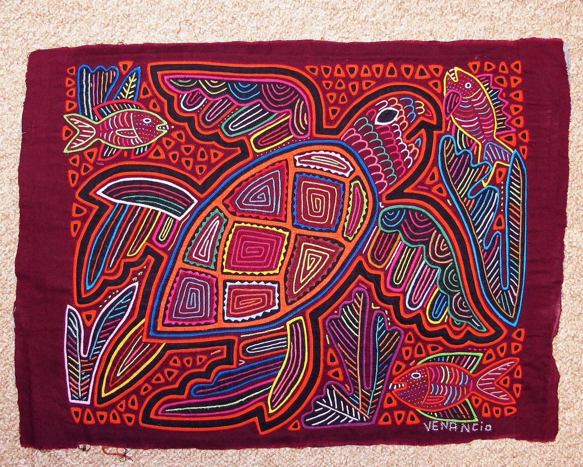 Molas are traditional panels made from brightly coloured squares of multi-layered, embroidered fabric depicting landscape scenes, birds, animals and fish. The Kuna Indian ladies wear the panels as a kind of top and there’s great pride in owning high quality molas – the quality depends on the number of layers of material and how detailed the stitching is. Some of the more elaborate panels can take months of work. After ploughing through hundreds of molas, Glenys finally bought two panels from Venancio – one for $60 and one for $30. I think that I got off lightly.