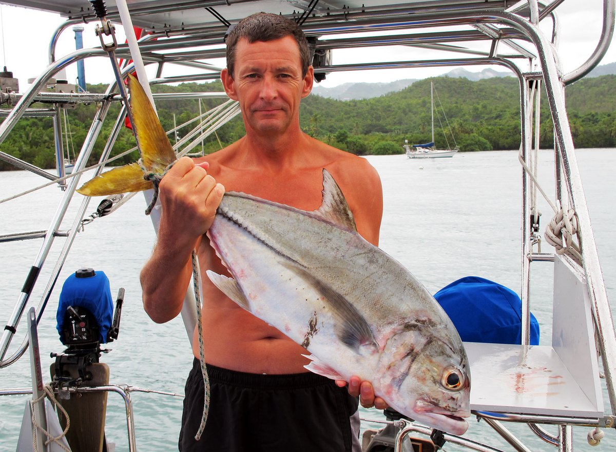 After dinner, we heard the splashing of fish around the boat, so I grabbed my small spinning rod and managed to catch a couple of nice Horse-eye Jacks – the biggest one (of course) got away with another of my lures.