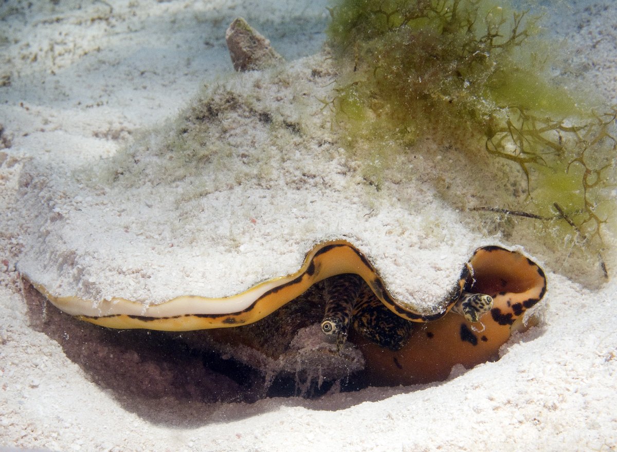 By midday, the clouds had started to build up, so we had a quick lunch and motored around to Sabudopored. Our anchor dragged on the first attempt, but on the second try it held well. I snorkelled down and found that the anchor was buried in hard packed sand in ten metres of water, but Alba was actually sitting above a small isolated reef about six metres deep. I guess that on our first anchoring attempt we dropped onto the reef. As I snorkelled around, I was lucky enough to pick up a conch which is a rare thing around here.