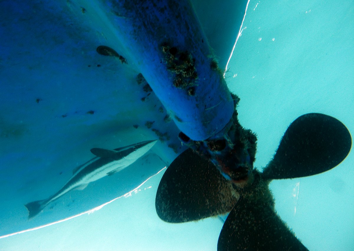 When we got back to Alba, Ronnie the Remora still lurking under the hull.  I eventually got a half decent photograph of him, but he was a little shy and the silt in the water made it a challenge.