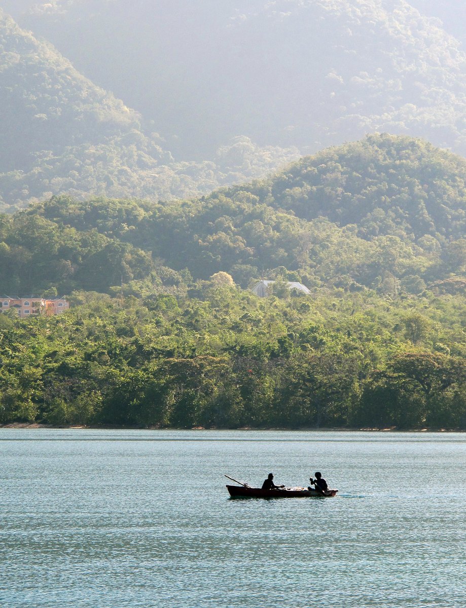 Fishermen paddle out in the early morning, Bluefields, Jamaica
