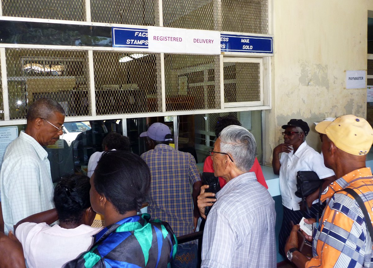 It was total chaos in the post office with hundreds of people queuing at various windows.  I eventually found the correct window and joined the "queue".  I use the word "queue" loosely because it was more like a "cluster" with people joining the crowd from both sides of the window.  There were six or so people simultaneously trying to attract the attention of the girl sitting behind the counter.