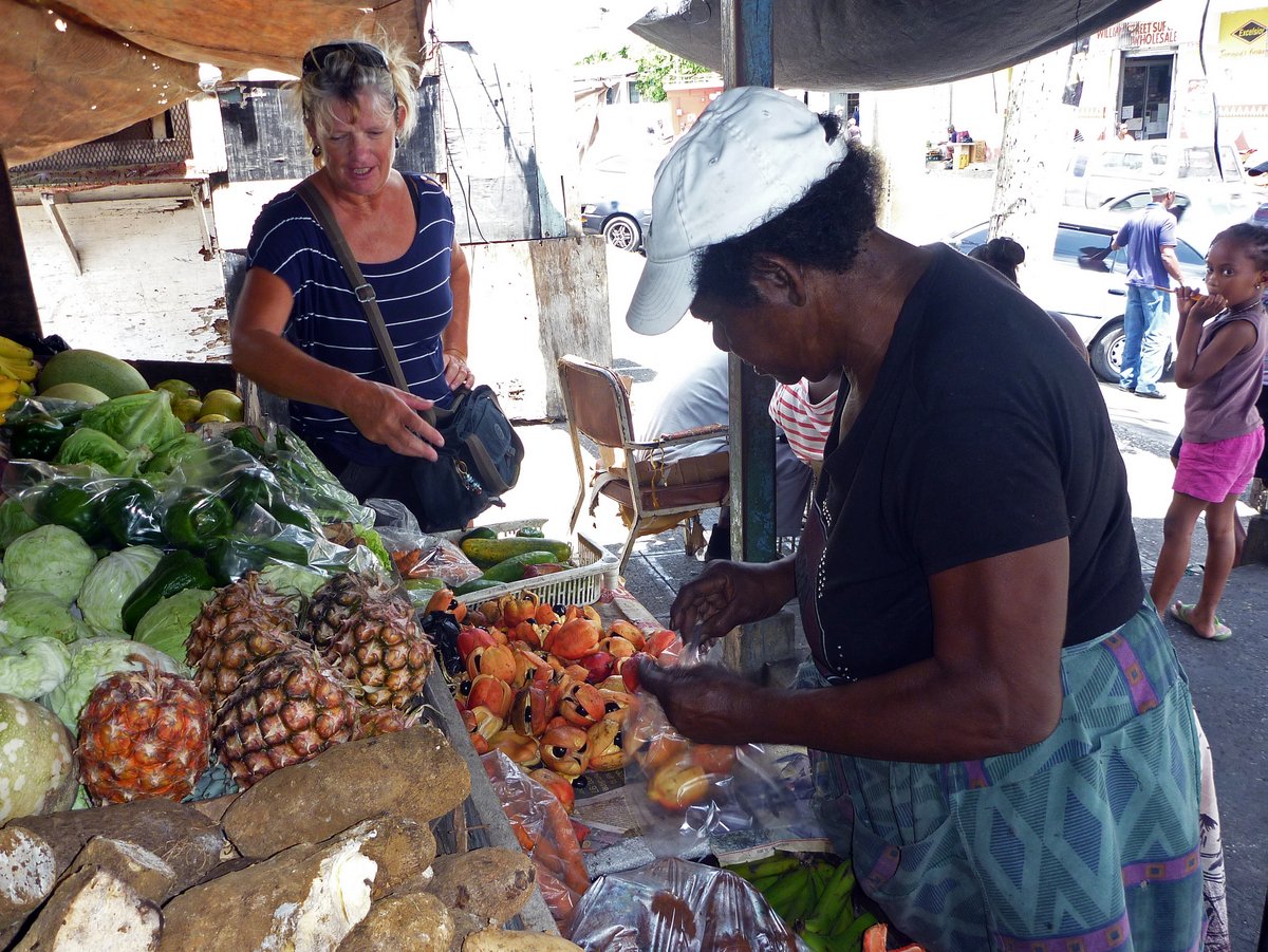 We went to the market and were initially approached by various people wanting to sell us things – taxi, hair braids, aloe cream for the sun, etc.  It’s very different to Grenada and St Lucia where they’re more used to foreign folk wandering about - I guess that here the only foreign folk that they see are tourists who are coming to gawk.  After ten minutes, they all realised that we were actually going to buy some vegetables and left us alone.
