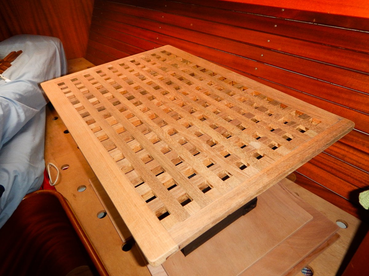 I did a bit more work on the teak grating and worked out the final dimensions. Mike from El Lobo is coming over tomorrow with his small table saw and a belt sander, so I should soon be able to tick this job off the list.