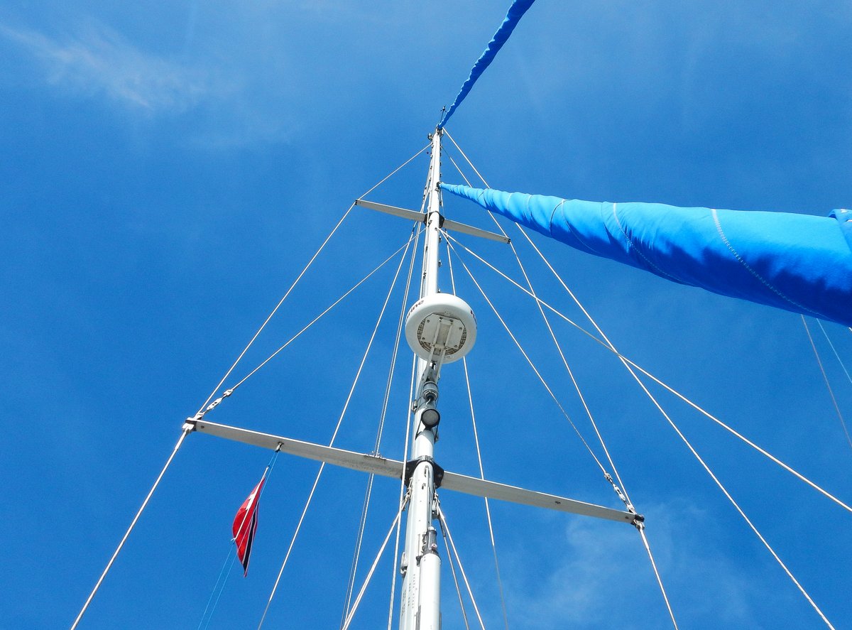 Just before lunch, I decided to replace four clevis pins at the top of the lower shrouds. When Jonas, the rigger inspected the rig, he noticed that these clevis pins were 12mm instead of 14mm, so I brought four new ones back from the UK. It was a fairly simple, if lengthy job, climbing up and down the mast. I had a bit of a delay when I had to dash to the Chandlers to get some spacer washers - that took 30 minutes…