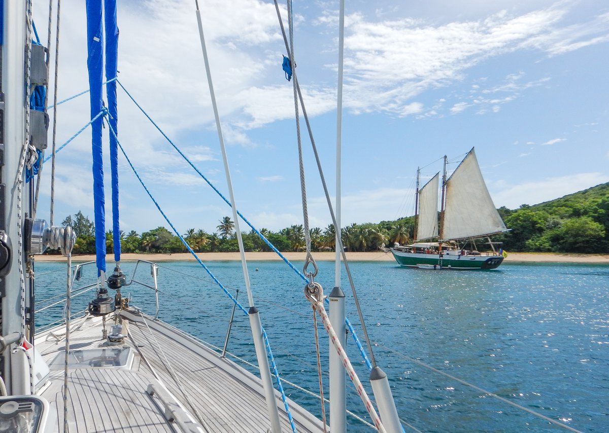 I tightened our lower shrouds. I had the rig professionally set to the correct tension in Trinidad, but when we’re beating to windward, the downwind lower shrouds are a bit too loose for my liking. I went around all four shrouds and tightened them by half a turn - we’ll see how that goes. I went for a snorkel in the afternoon on the rocks close to where we’re anchored, but I didn’t see anything special.