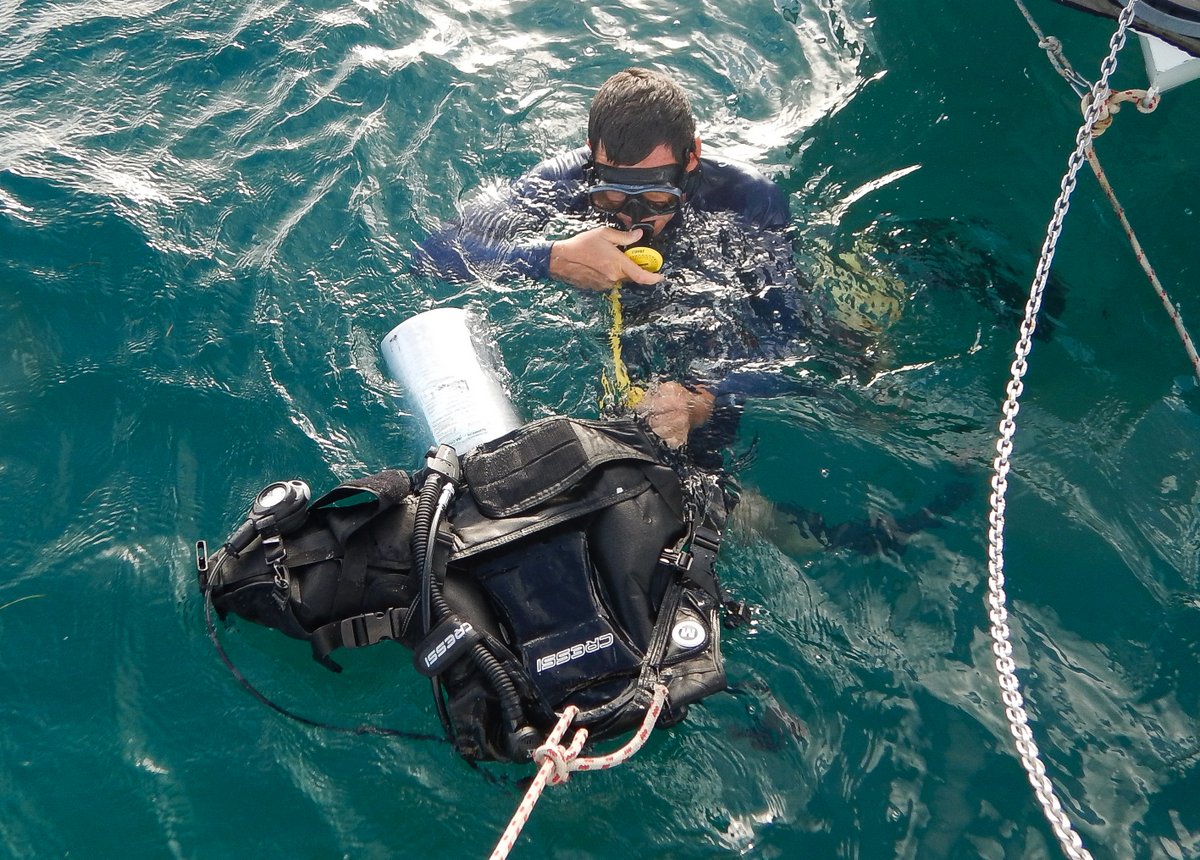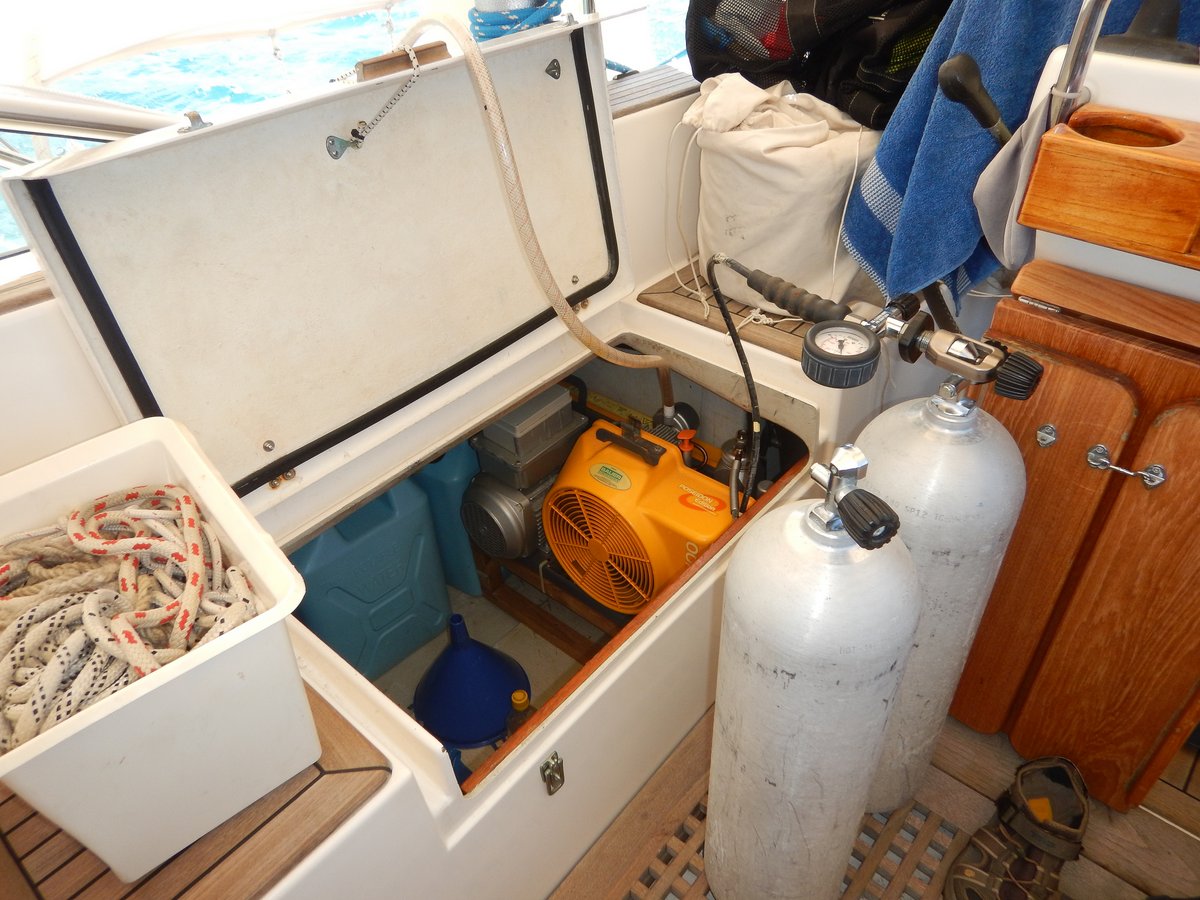 In the afternoon, I did some work on our dive gear. I took the octopus regulators apart, cleaned the needle valves with some fresh water and adjusted the valve seats to make them harder to purge. I then put the regulators on a tank and went for a little dive under the boat. All three now seem to work fine, so I don’t have to have them serviced now.
