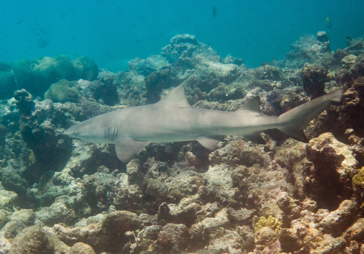 I was really excited when a Lemon Shark swam past me - only about ten metres away. Unfortunately, I had my camera on the wrong setting and didn’t get a good shot of it, but it circled around the shallow reef and came back - not so close this time, but I managed to get a snap of it. Five minutes later, the shark returned, so we decided that it was acting very territorial and got out of the water.