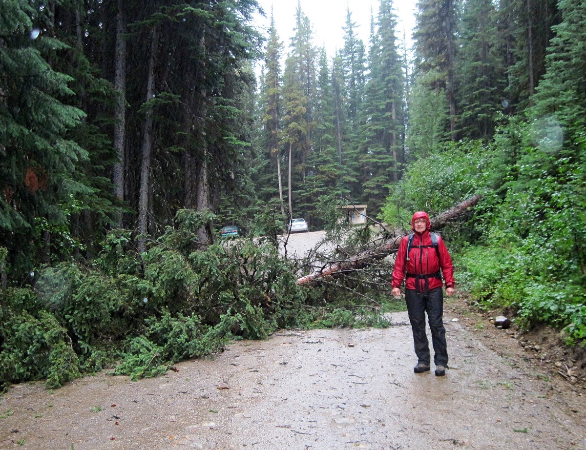 The backup arrived with a bigger chain saw and, with his help, we cleared the whole road - finally getting back to our car by half past seven. We drove down without any further rmishaps and drove back into Jasper into the supermarket to buy beer and something to eat, before returning to our B&B to collapse.