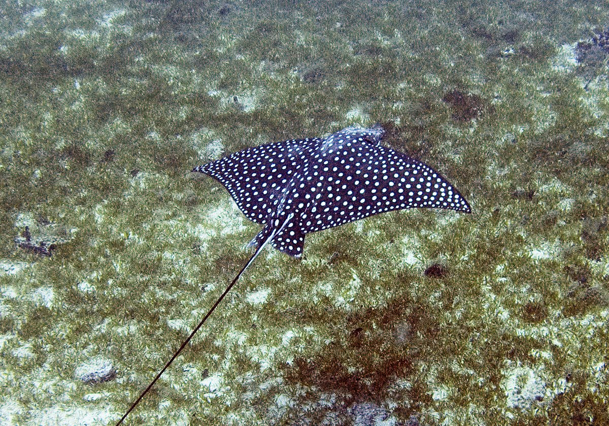 This is a pleasant dive on sloping reef, which runs along the edge of a sandy seabed. Hardly anyone else goes here, so you're likely to see something different. We saw a lovely big Spotted Eagle Ray here. |