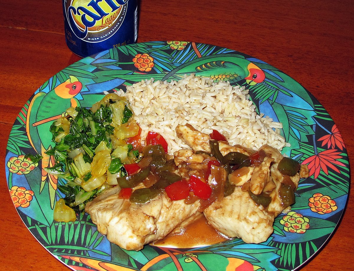 Remove from the heat and serve straight away, with boiled rice and pak choi.