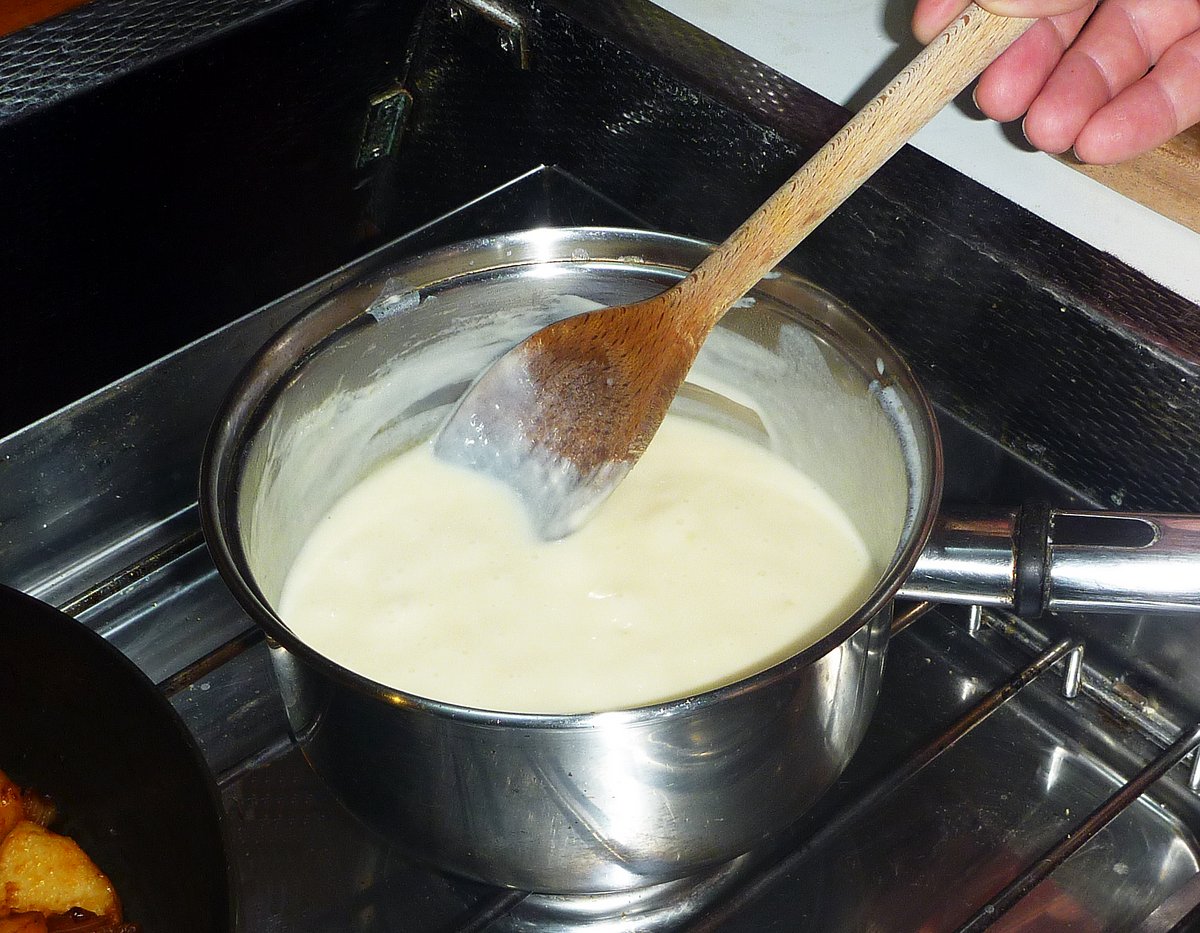 Melt the butter in a small saucepan. Add the cornflour, and cook gently for a few minutes. Take the pan from the heat and slowly add the milk, stirring all the time to prevent lumps forming.