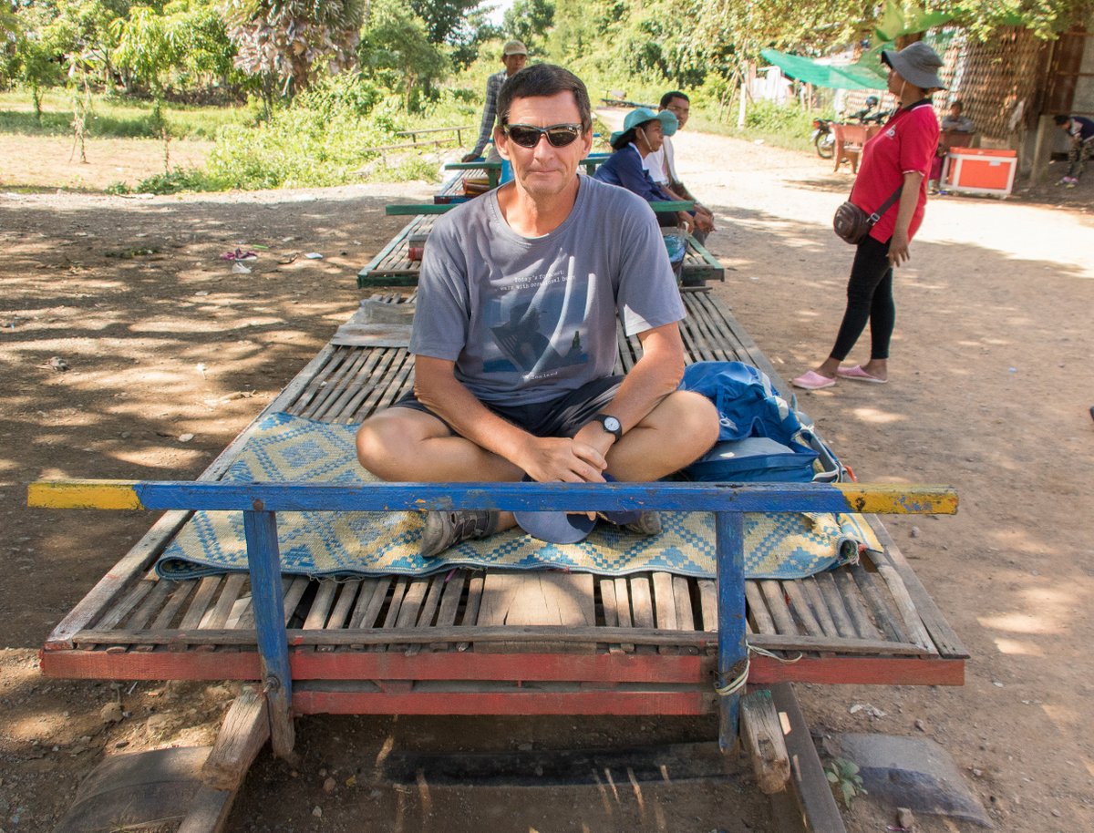 Our Tuk-tuk driver, Pen, took me to the Bamboo Train, which is a bizarre rail journey. The French colonial government built a railway system in Cambodia, but it’s largely abandoned after the Khmer Rouge regime shut it down in the 1970s. The resourceful Cambodians started to make use of this unused resource and built small self-powered little trains which are 3m * 2m wooden platforms covered with bamboo slats, sitting on top of two sets of barbell-like wheels.