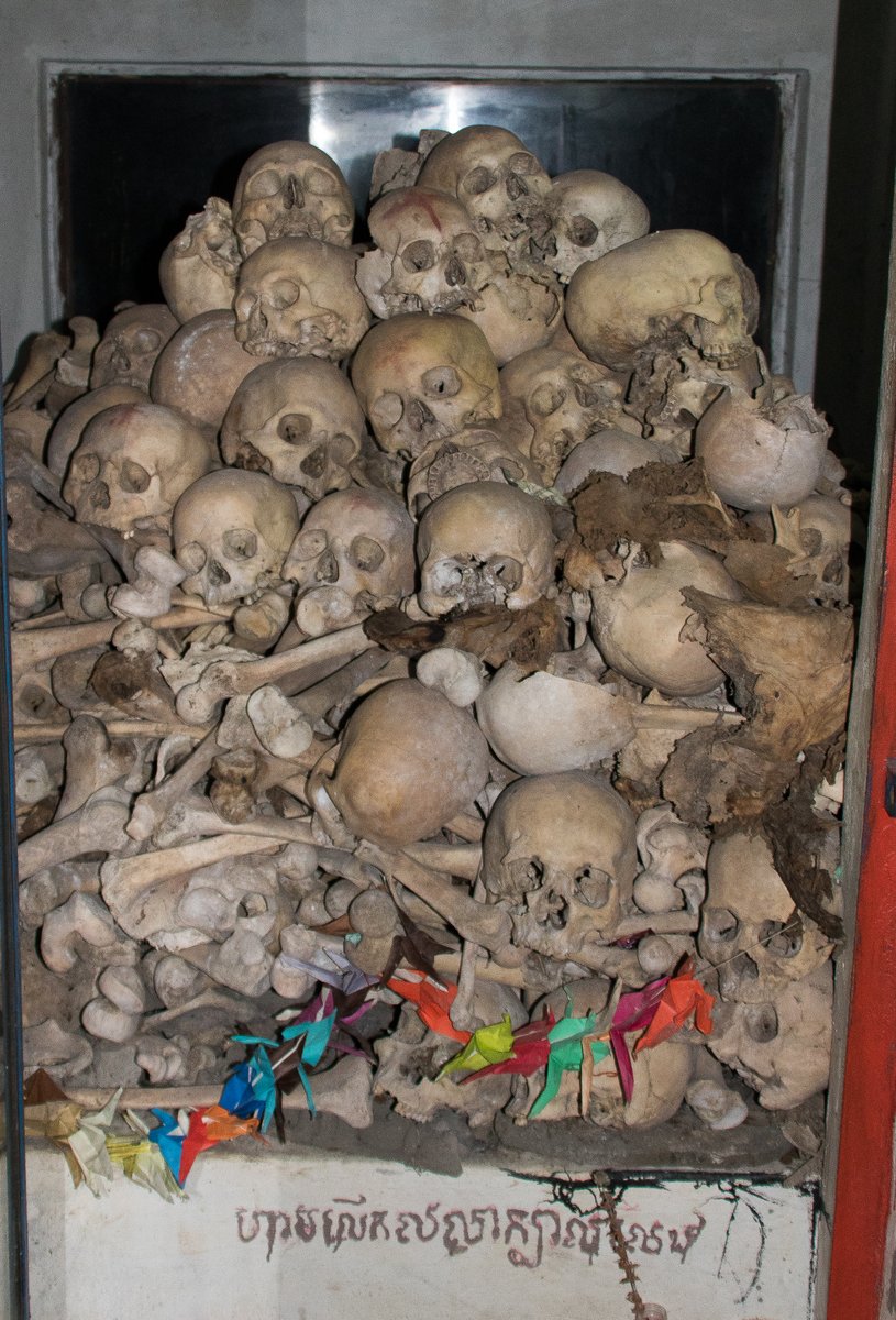 Our first stop was at the Killing Caves. This is our first contact with the genocide carried out by the Khmer Rouge led by Pol Pot in the late 1970s in which over two million people died. Pen took me to a Buddhist temple, which was commandeered by the Khmer Rouge and turned into a prison housing 500 people. The Khmer Rouge interrogated the prisoners, extracted a confession and then bludgeoned the victims to death and dropping their bodies into a set of caves.