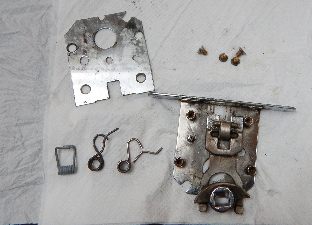 The next stage was to re-harden the steel, which is done by heating the spring up to cherry red and plunging it into water. This makes it hard, but also very brittle, so I needed to temper it back to be slightly more malleable. I cleaned up the surface of the metal, so that I could see shiny steel and then reheated the spring slowly until the surface went a straw colour and then blue. I then let it cool naturally which gave me a strong spring. It took a couple of attempts, but I soon had a working lock again.