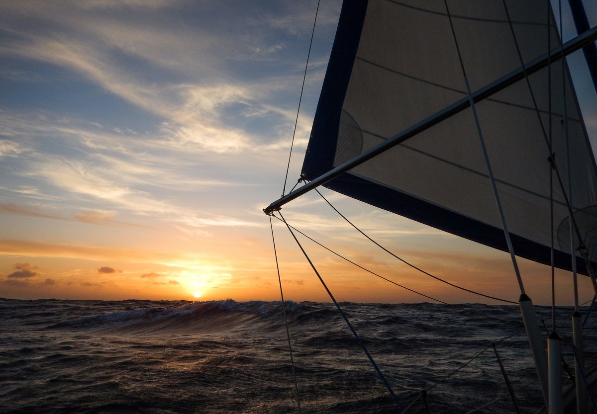 By midnight, the wind had picked up to 15 knots from our port quarter, but the waves became even more confused and we had to wait another hour until the wind had picked up some more, causing the waves to come from behind us and allowing us to sail. Gradually over my 1-4 watch, the wind picked up to 25 knots, so we were surfing along at 7.5 knots boat speed – 11.5 knots over the ground aided by a 4 knot push from the Agulhas current. It was a little too exciting, so after an hour, I rolled away the mainsail and we continued with only the genoa, still making 5.5 to 6.5 knots boat speed.