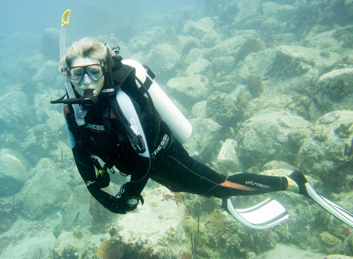 It wasn’t very interesting because it was mostly sand and broken coral with a smattering of small coral outcrops. However, I was excited to find a Spotted Cleaner Shrimp lurking in a Giant Anemone. I’ve been searching for this tiny one-inch long creature for months - ever since we came back to the Caribbean.
