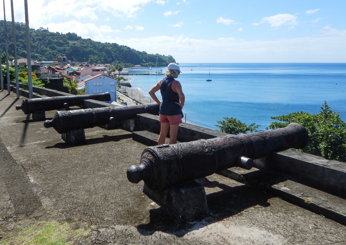 Back in town, we bought some bread and scooted back to the boat. It was only 11:00, so we went ashore on Ile Cabrit and walked up to Fort Josephine, which is another fort, but this one is in ruins. There are some nice views down onto the anchorage, but not a lot else to look at, so we were back on the boat just after noon.
