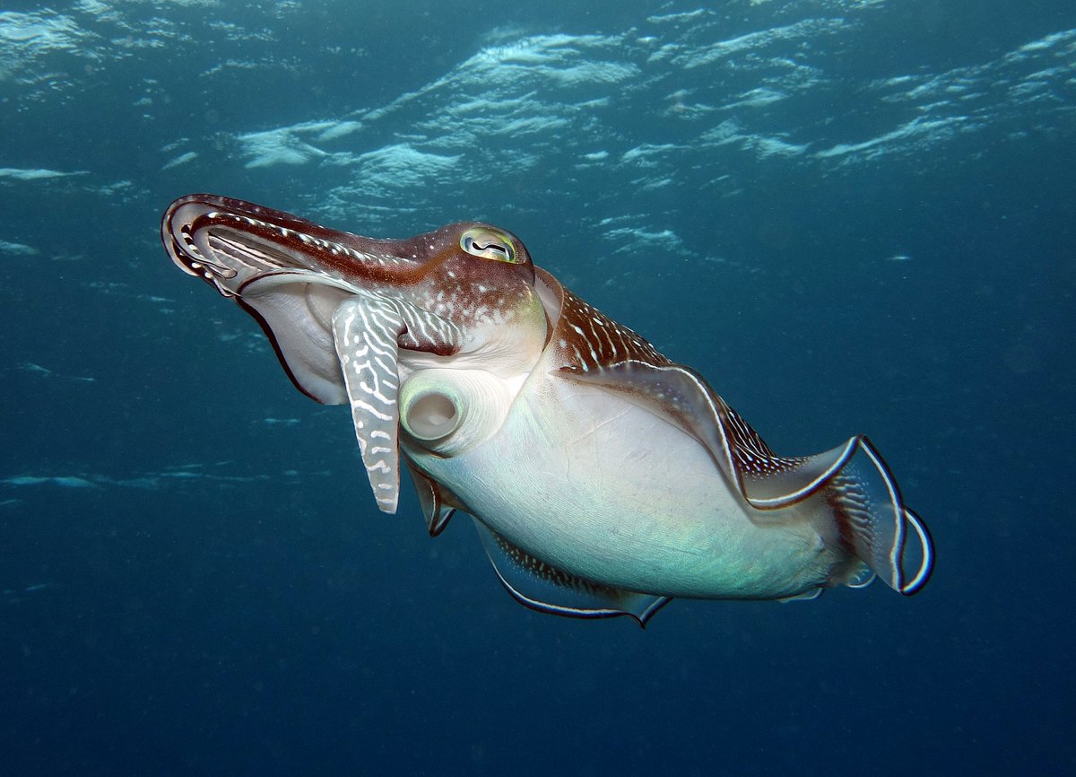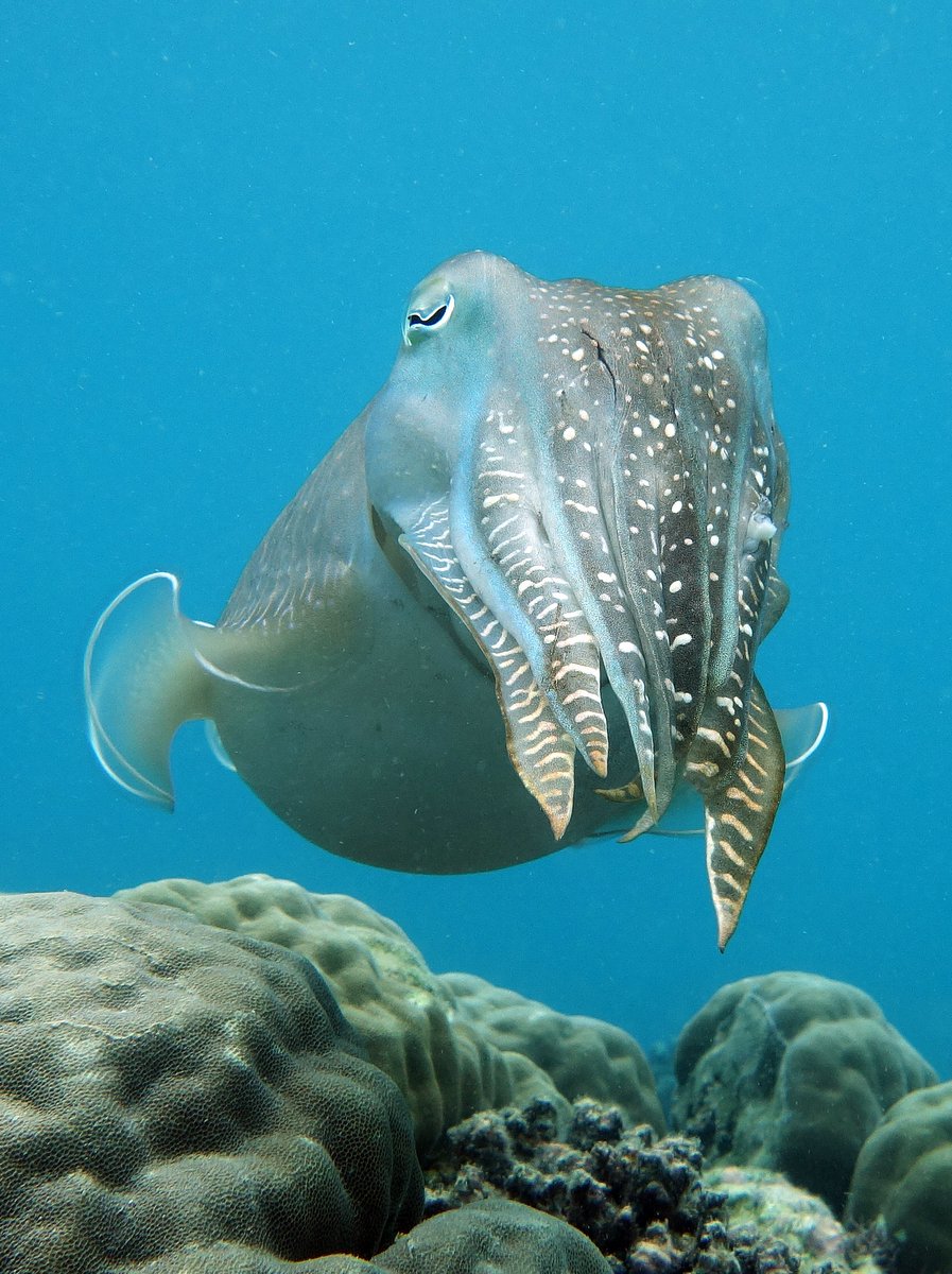 I pottered about in the morning and then went for a snorkel. I tied the dinghy to the buoy next to the anchorage and found a shoal of about eight Broadclub Cuttlefish. About 12 inches long, they were very large and seemed to be as curious about me as I was about them.