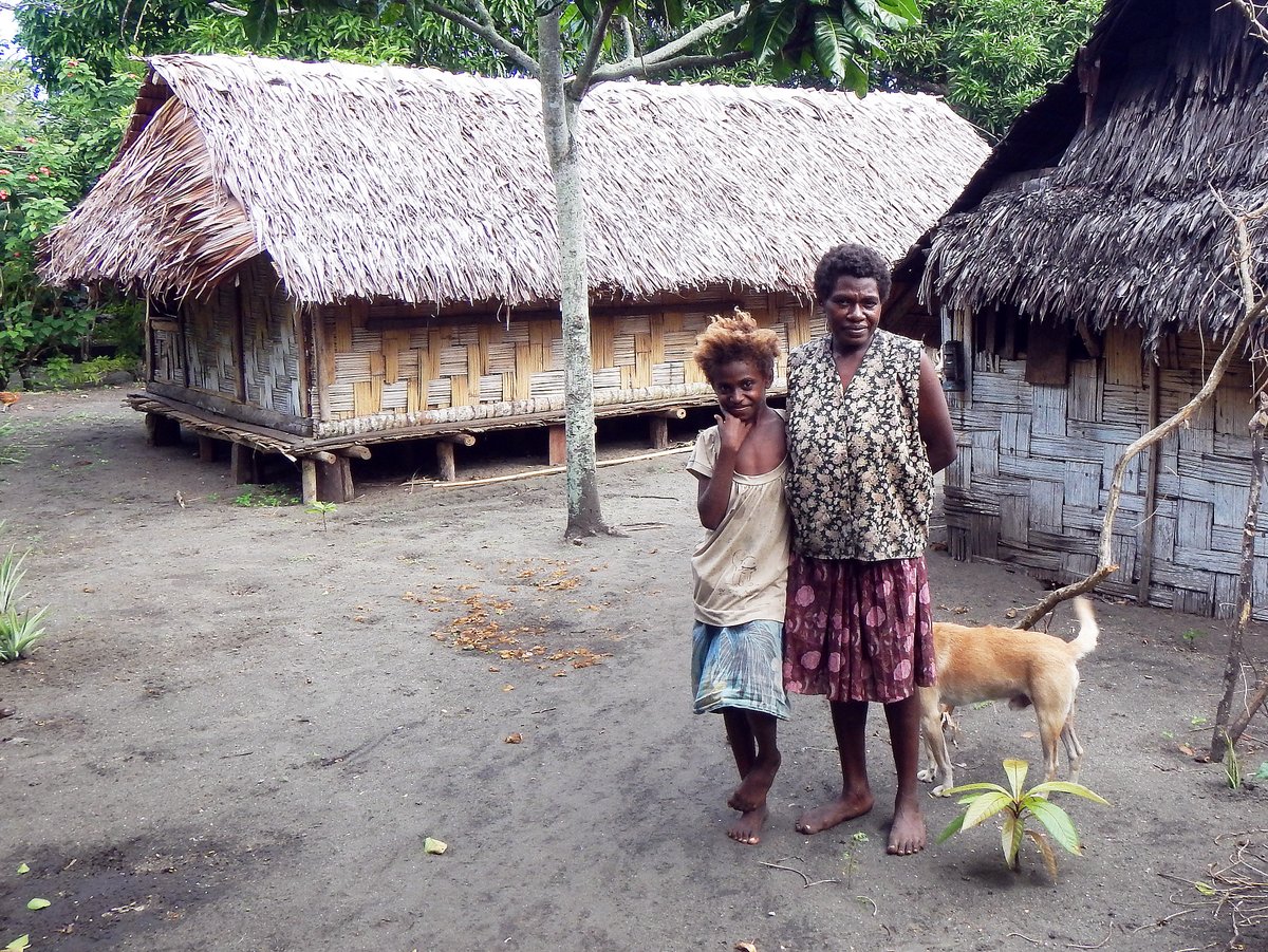 Most people were walking around in bare feet and all were dressed in worn out clothes - the men in tattered shorts and t-shirts and ladies in their Mother Hubbard dresses. Women were carrying buckets to the well to lift water using a hooked pole; men were repairing the thatched roof of a traditional hut and two ladies were sat on the earth next to their open fire making laplap. It’s all quite humbling.