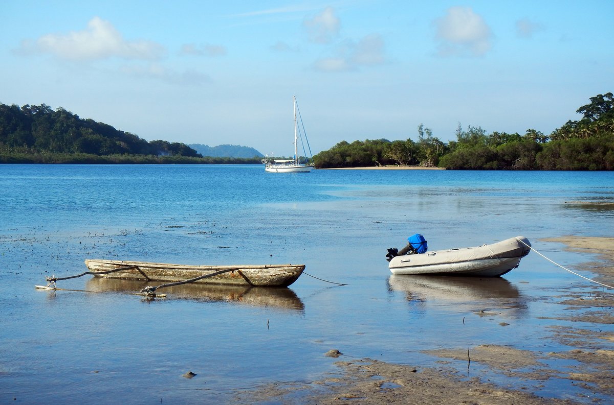 I was woken just after dawn by the sound of voices nearby and looked out to find twenty or so villagers paddling back and forth in their dugout canoes, trolling for fish. One guy spotted me on deck and came over for a quick chat. He’d only caught four little sardines and said that it was a poor day. I told him that the people in Tanna catch the same fish with nets, but he told me that the chief doesn’t allow them to use nets, so they troll small lures made from a piece of clear plastic tubing and two small hooks.