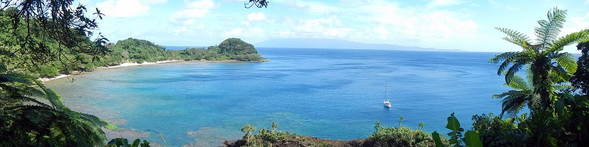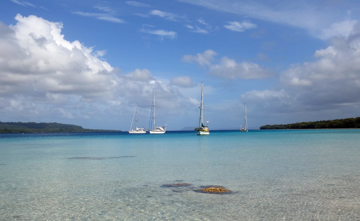 The sandy sea bed shallows very slowly and we anchored in 5 metres with a small amount of swell gently rolling us. The Navionics charts only have a little detail - the mainland is correctly positioned, but there’s a small island shown in the middle of the bay, which is actually further south at the edge of the bay. We had very good visibility, so we hugged the reef to starboard, but in less perfect conditions, I suggest the following waypoints 16:35.45S 167:29.26E and 16:34.81S 167:29.12E. We anchored at 16:34.71S 167:29.48E.