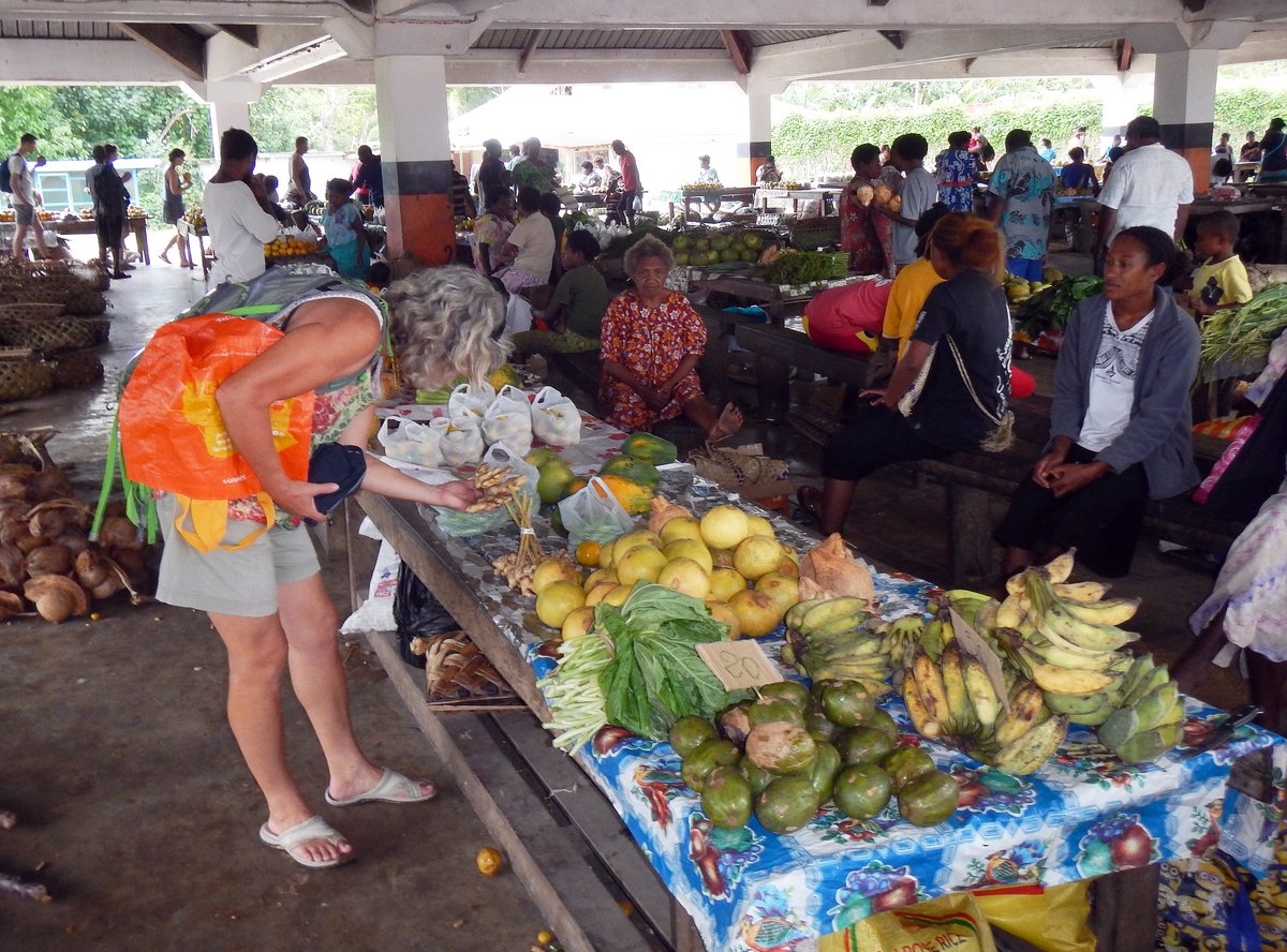 There was a cruise ship in town, so the dirt road leading to the port was lined with small stalls selling lava lavas, t-shirts, shells and other souvenirs to the cruise ship passengers - we didn’t buy any. Instead, we walked to the vegetable market and checked out some of the supermarkets. There’s a very good supermarket called LCM, which has most of the stuff that we will need to stock up on before we leave here. We bought enough food to last us for a week and caught the ferry back to the resort.