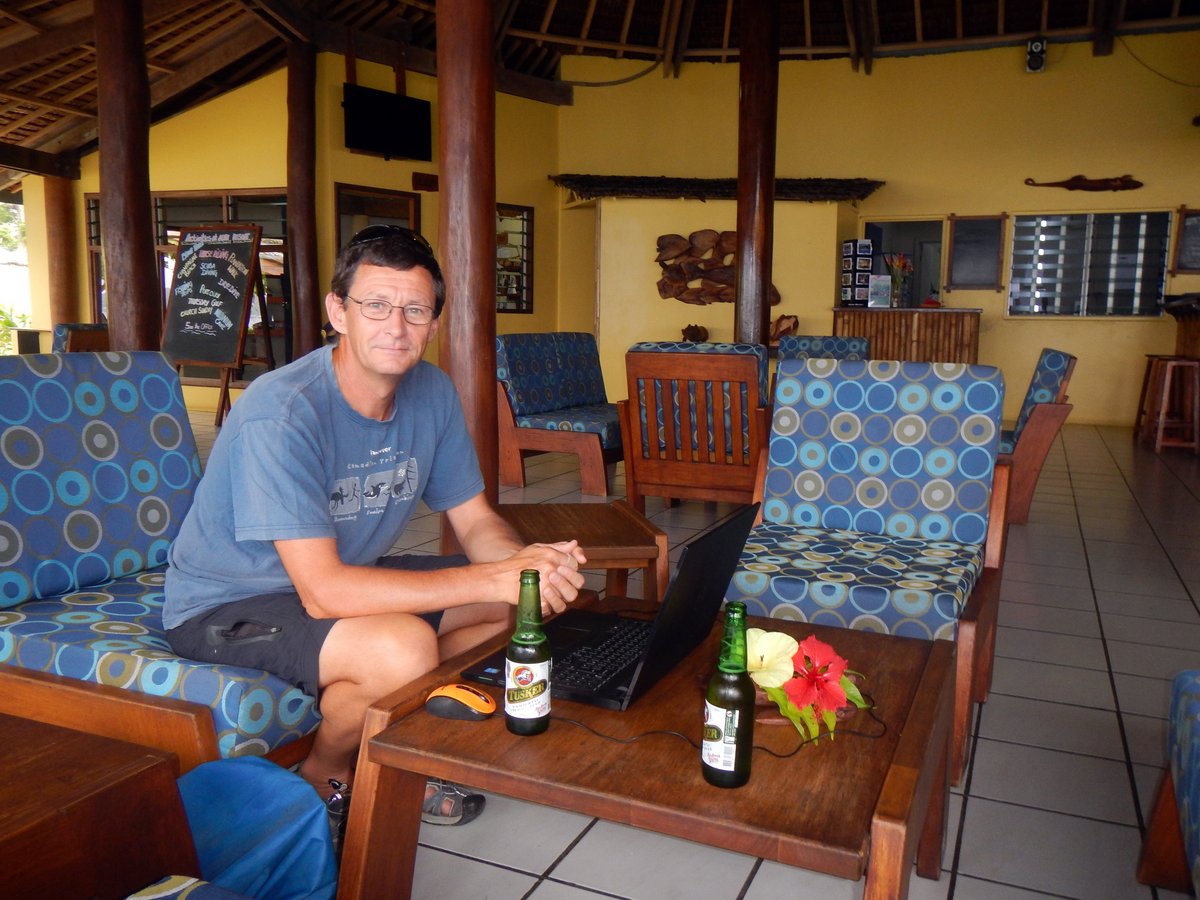 After lunch on board, I went to the hotel lounge to do some internet work, trying to download information about anchorages in the Louisaides and Indonesia. Unfortunately, the hotel was very busy with local ex-pats who had come over from Luganville to escape from the cruise ship, so the internet was painfully slow.