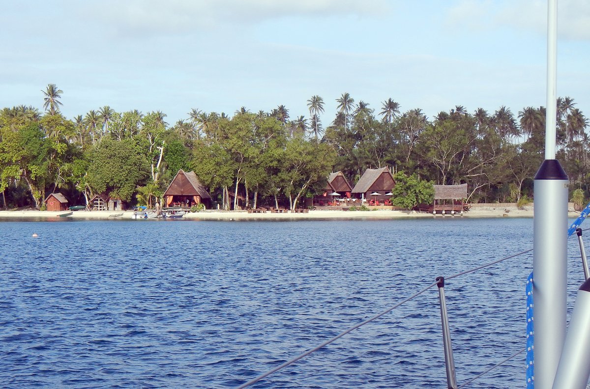 I nipped into the hotel to pick up our laundry and then we motored around to Ratua Island on the south side of Aore Island. There’s a small holiday resort here, who have installed two moorings, but they looked to be in a poor state of repair. We ignored the moorings and anchored in 14 metres of water away from the various reefs in a sandy patch. It’s a nice looking anchorage and we can pick up the Hotel’s wi-fi internet on the boat, so we’re happy here.