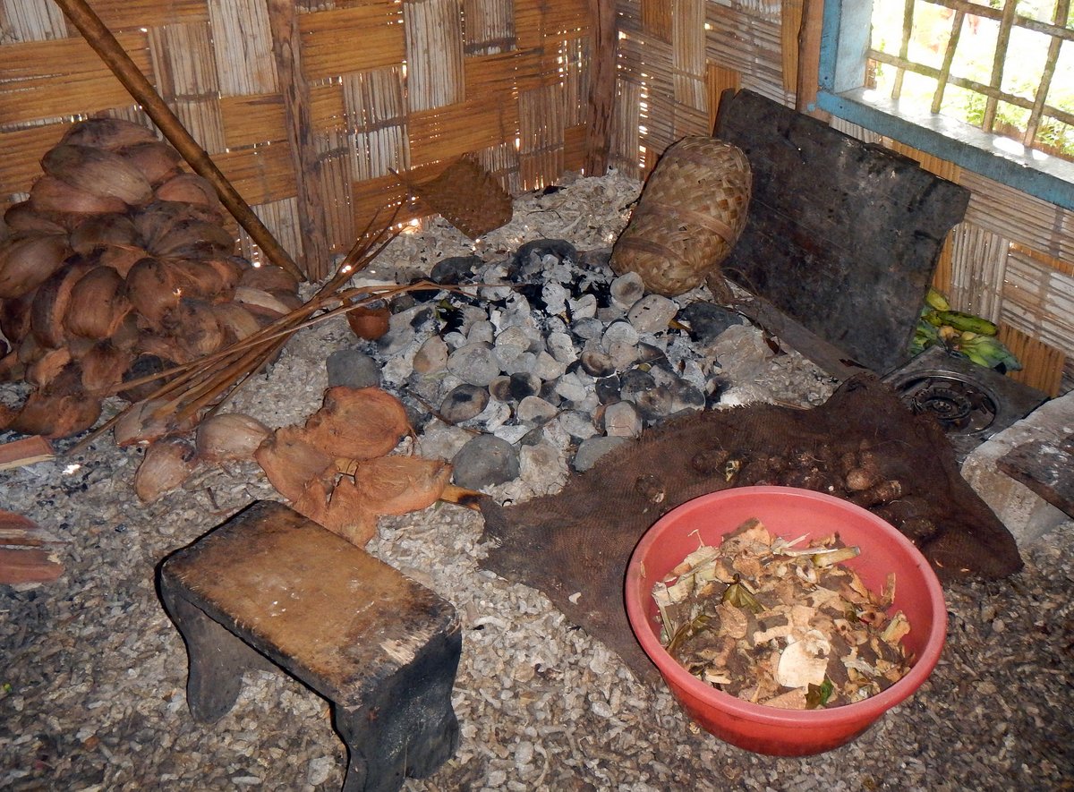 Angela was really on our wavelength, understanding that we were interested in the everyday side of their lives and so she took us to her house, showing us around. Her main house is concrete, with a living room and three bedrooms. She also has two traditionally built huts, which are her kitchen and dining room. It was interesting to see her kitchen with a stone fire for making Laplap and open fire for normal cooking.