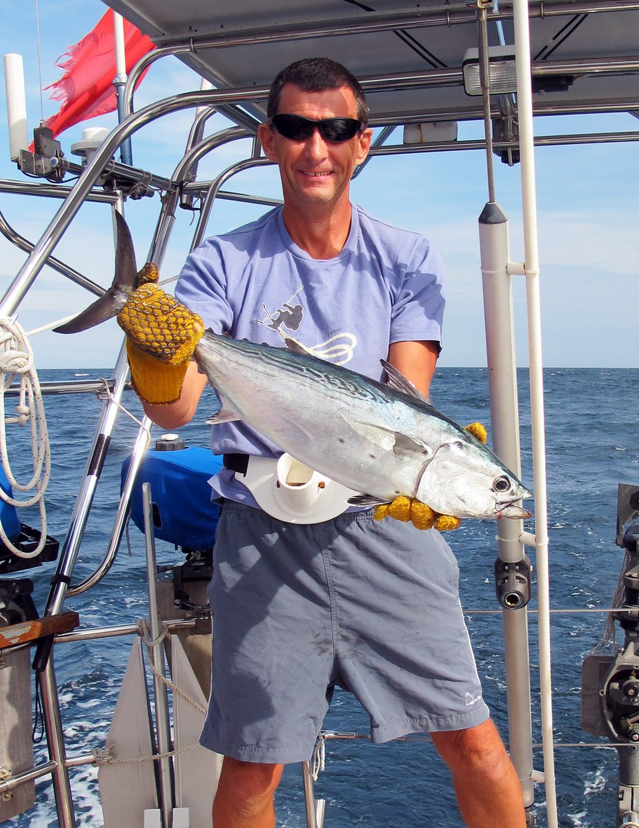 The alarm went off at quarter to six and we were soon underway motoring west. There wasn’t much wind for the first two hours until we cleared the wind shadow from Epi, then we had a beautiful sail with 15 knots off the port quarter. I went to bed for an hour before lunch and Glenys managed to haul in nice Rainbow Runner - fish for dinner tonight.