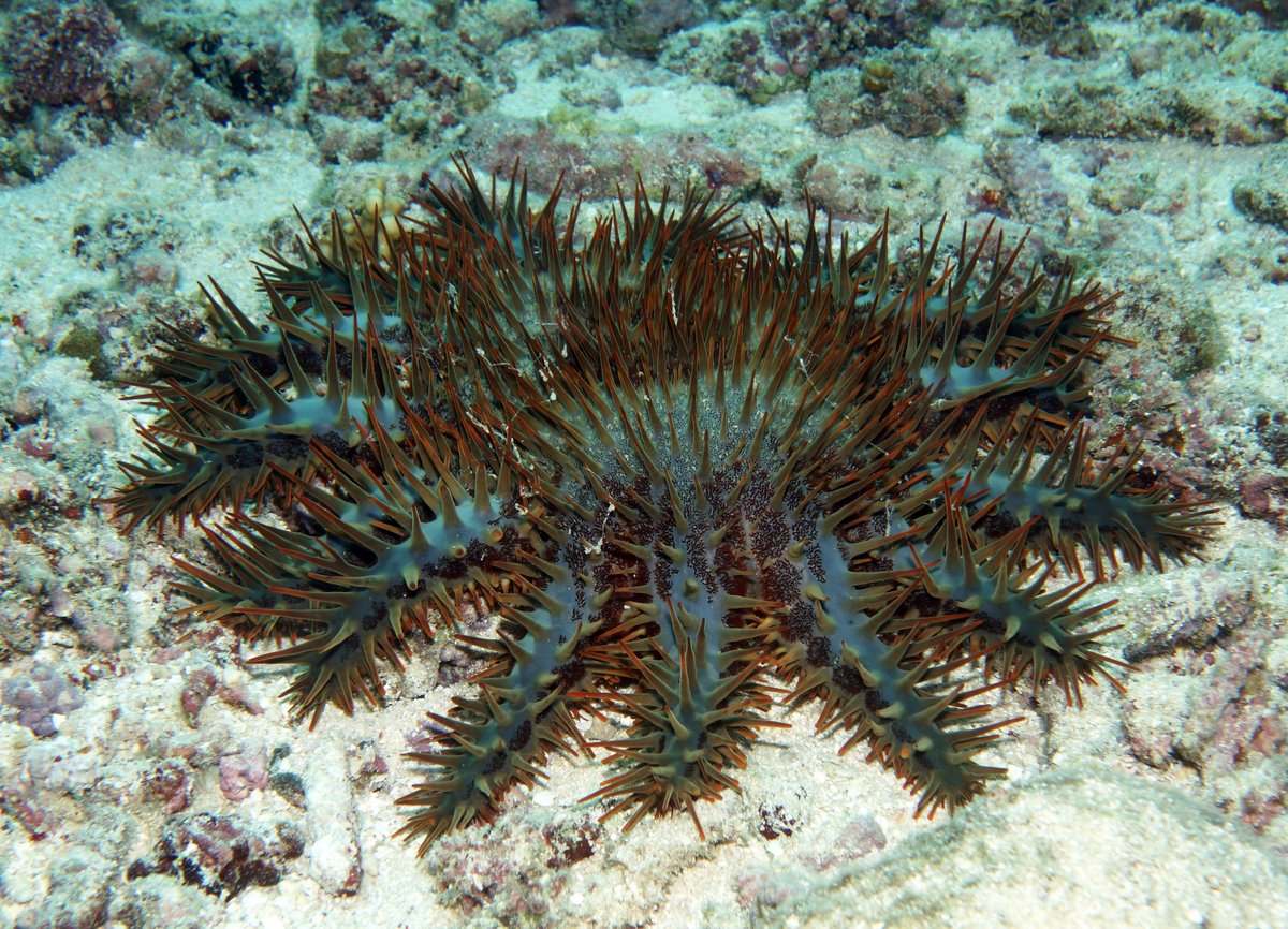 In many places throughout the Pacific, dive operators actively kill Crown of Thorns starfish, by injecting them with a poison, to reduce their numbers and protect their reefs. I believe that these starfish can also be killed by collecting them in a large flour sack, then leaving them in the water for a day. The starfish need a flow of water over them, so die in the confines of a sack - they can then be tipped out to feed the fish. Perhaps I should start doing my bit.