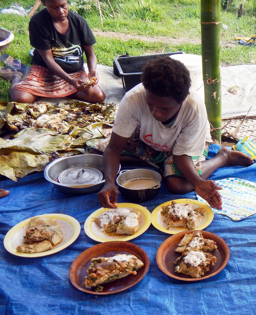 9. Cook for about one hour. Cut the Laplap into big slabs and sprinkle with coconut cream. Serve hot with coconut cream in a separate bowl. |